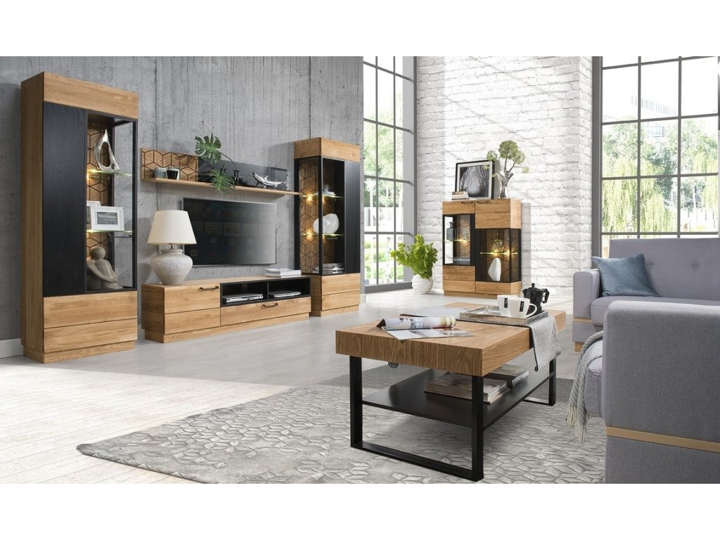 Konferenční stolek 110x60x42, AHG-233 OAK, MDF divoký dub, kov černá matná