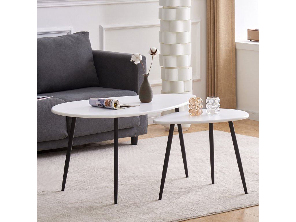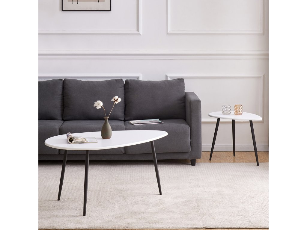 Konferenční stůl, MDF deska, bilý matt, černý kov
