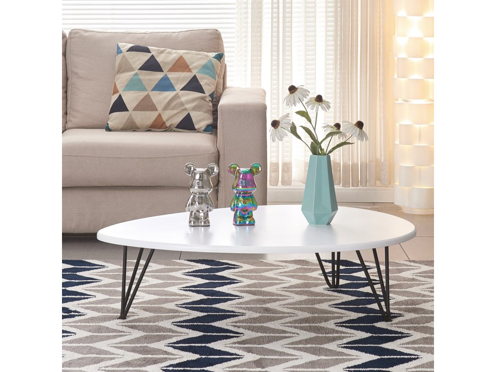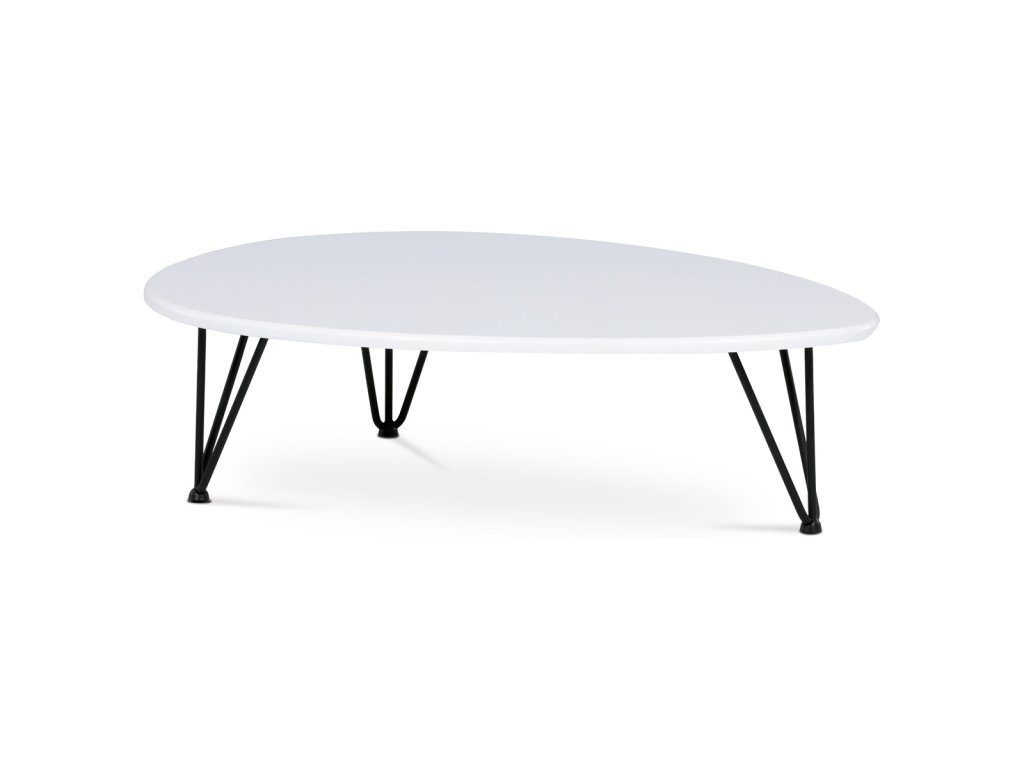 Konferenční stůl, MDF deska, bilý matt, černý kov