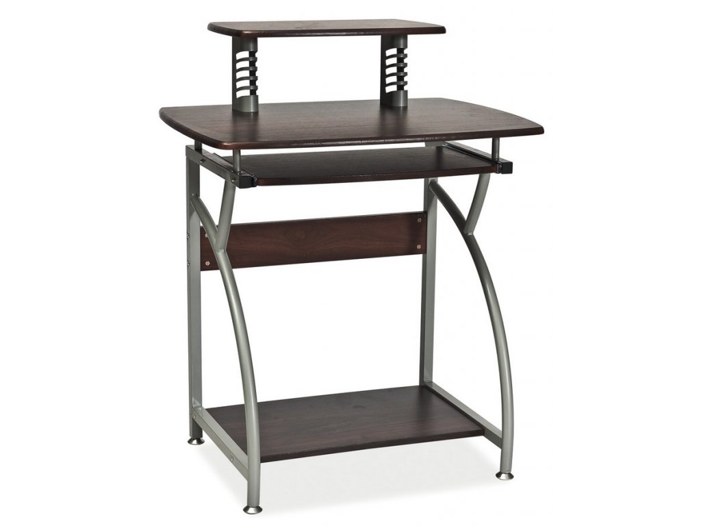 Jednoduchý, ale praktický pracovní stůl. Dostatečný prostor pro PC i klávesnici. Konstrukce je kovová v barvě aluminium, desky jsou z kvalitního MDF v barvě tmavě hnědá. Vhodný i pro menší pokoje. Dodáváme v demontovaném stavu.Doplňkové parametry