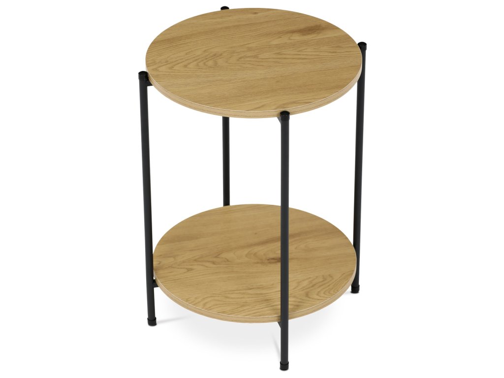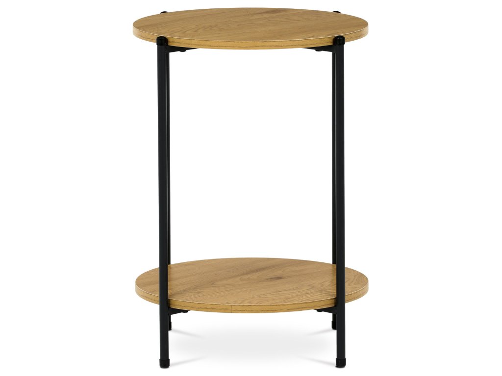 Moderní přístavný stolek značky Autronic spojuje minimalistický design a funkčnost. Kulaté desky v dekoru divokého dubu dodávají stolku přírodní eleganci, zatímco černě lakovaný kovový rám zajišťuje stabilitu a odolnost. Dvě praktické police nabízí dostatek prostoru pro uložení dekorací, knih nebo šálku kávy. Díky svému univerzálnímu vzhledu je tento stolek ideální volbou do obývacího pokoje, ložnice nebo kanceláře. Vneste do svého interiéru styl a praktičnost s tímto nadčasovým kouskem!Doplňkové parametry
