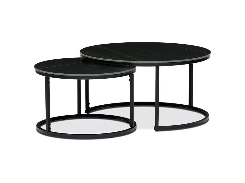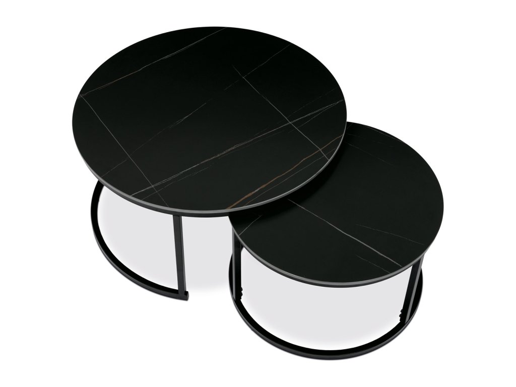 Sada 2 konferenčních stolů o80 a o60, černá keramická deska, černé kovové nohy