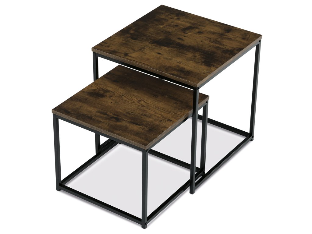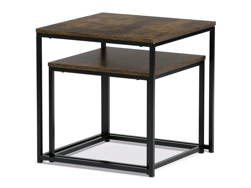 Set 2 ks odkládacích stolků, MDF, dekor divoký dub, kov, černý lak
