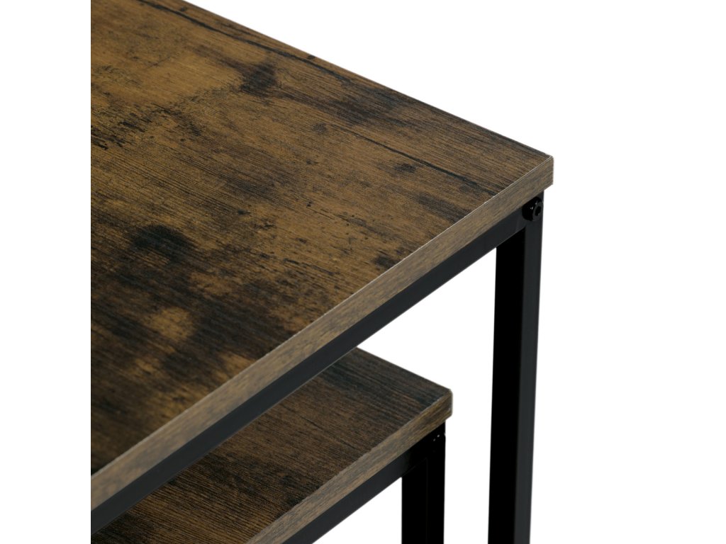 Set dvou konferenčních stolků značky Autronic je ideální volbou pro moderní i industriální interiéry. Stoly se vyznačují minimalistickým designem s pevnou kovovou konstrukcí v černé barvě a deskou s přírodním dekorem dřeva. Díky praktickému provedení lze stolky snadno využít samostatně nebo společně, což zajišťuje variabilitu při uspořádání prostoru. Tento set přináší nejen funkčnost, ale také styl, který zaručeně oživí každý obývací pokoj. Skvělý doplněk pro útulný a moderní domov!Doplňkové parametry
