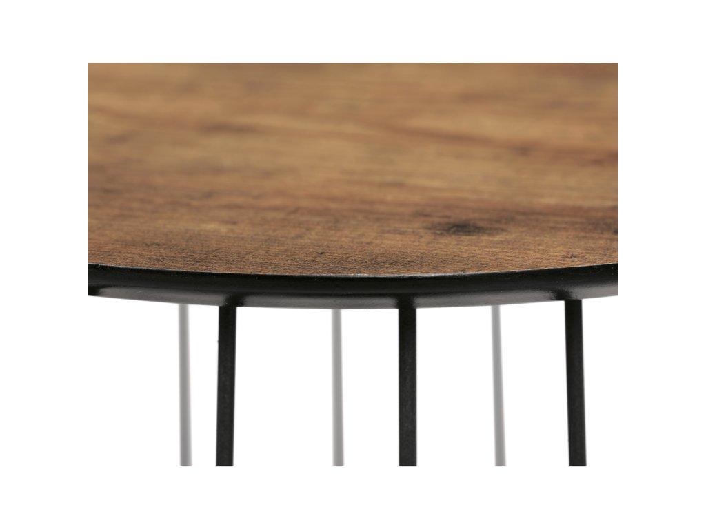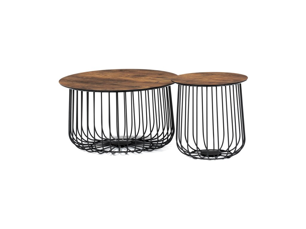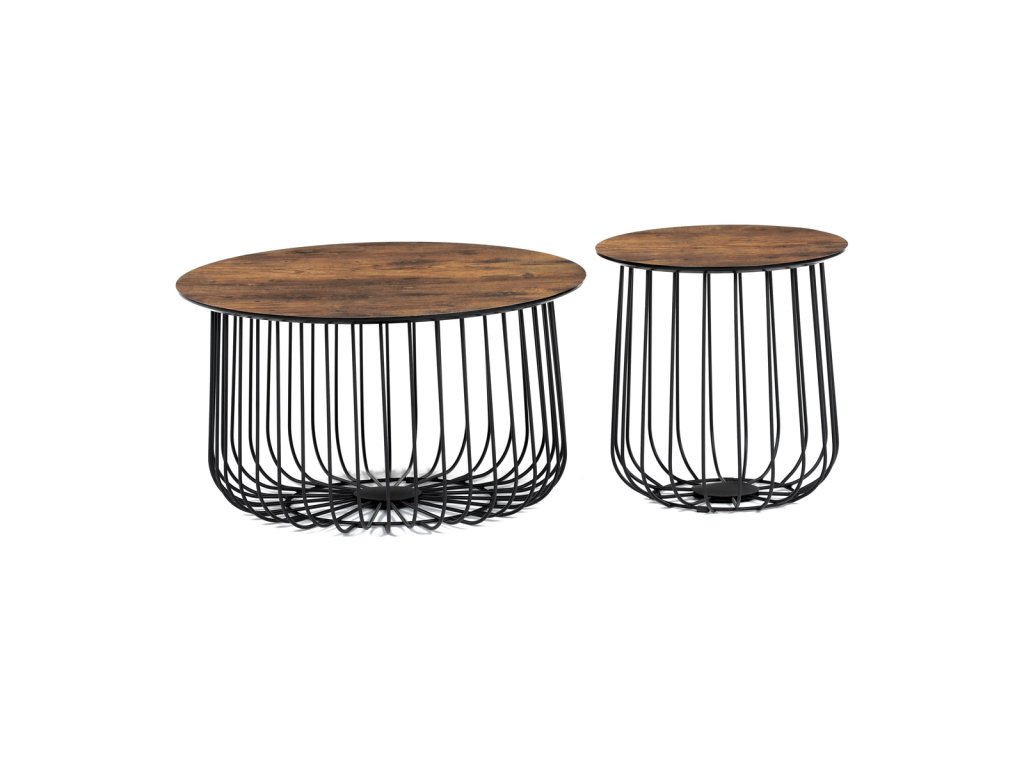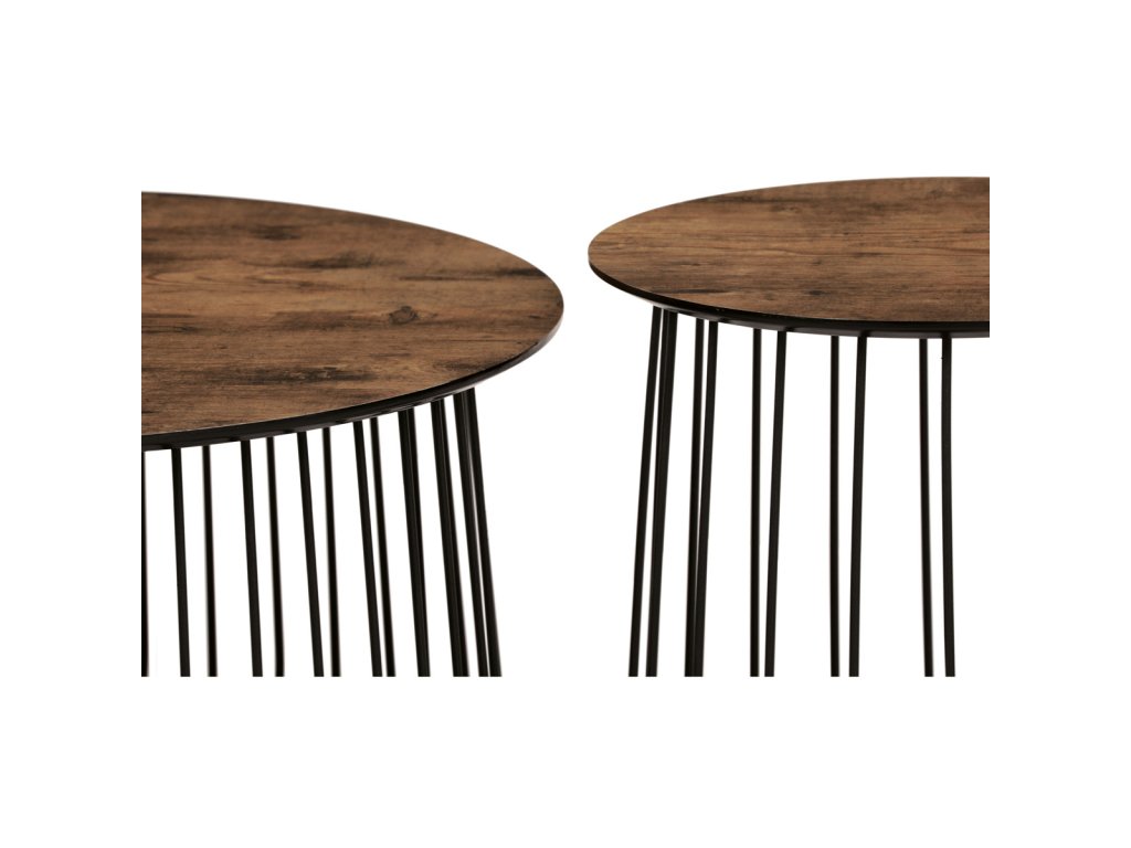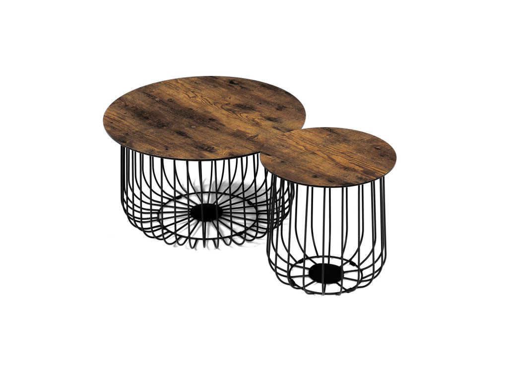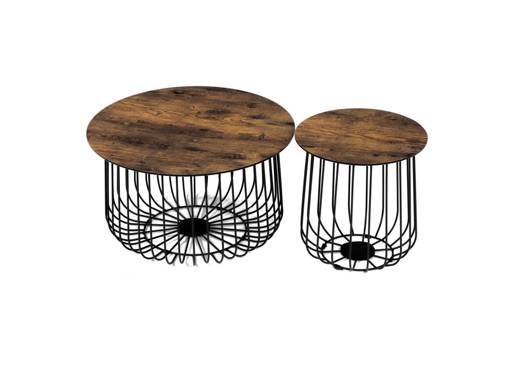 Set 2 ks stolků,pr.60x34, pr.37x39 cm, deska MDF, 3D dekor staré dřevo, kovová drátěná podnož, černý mat