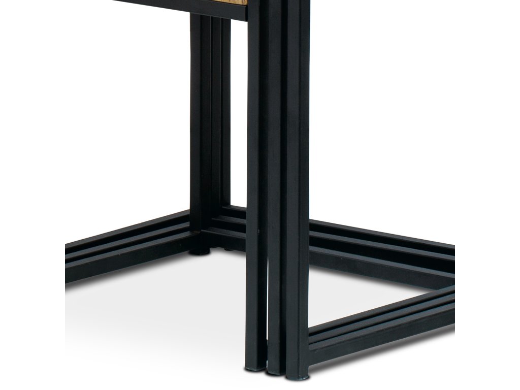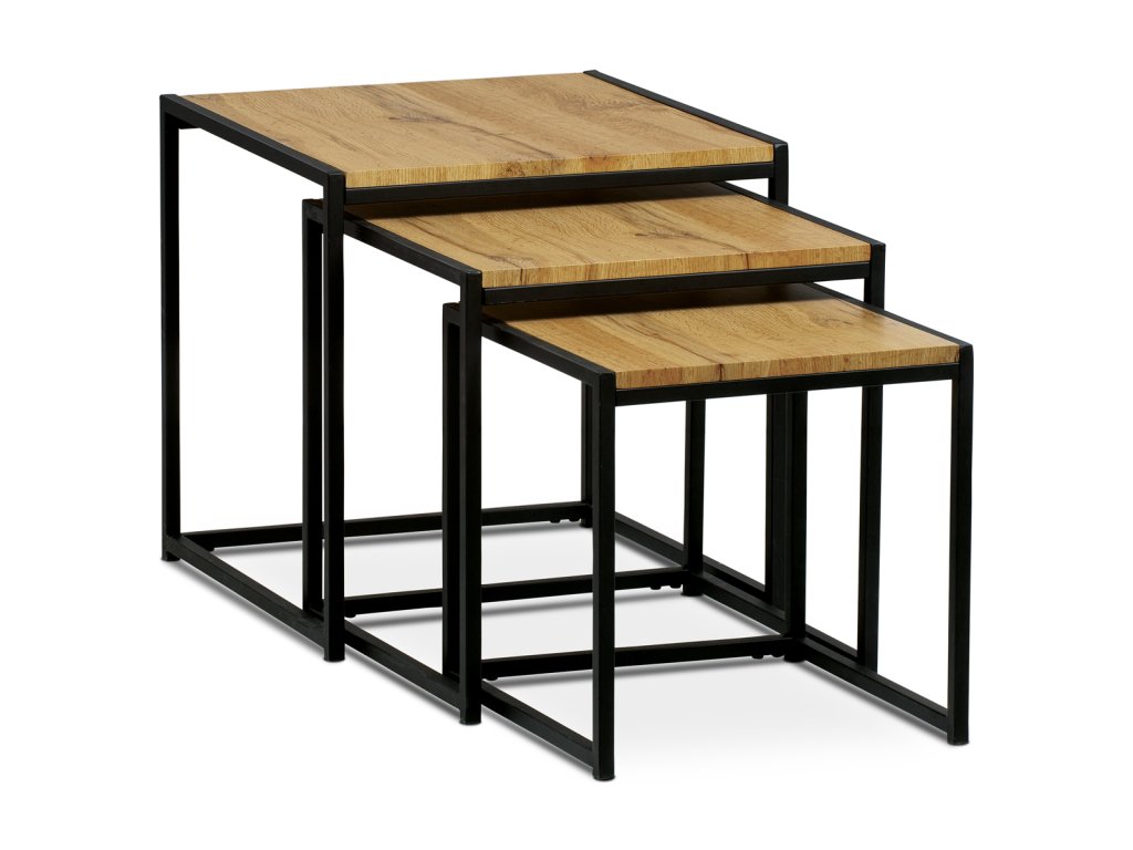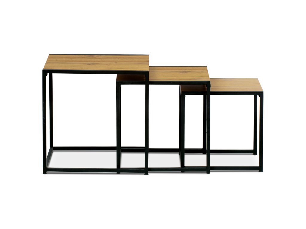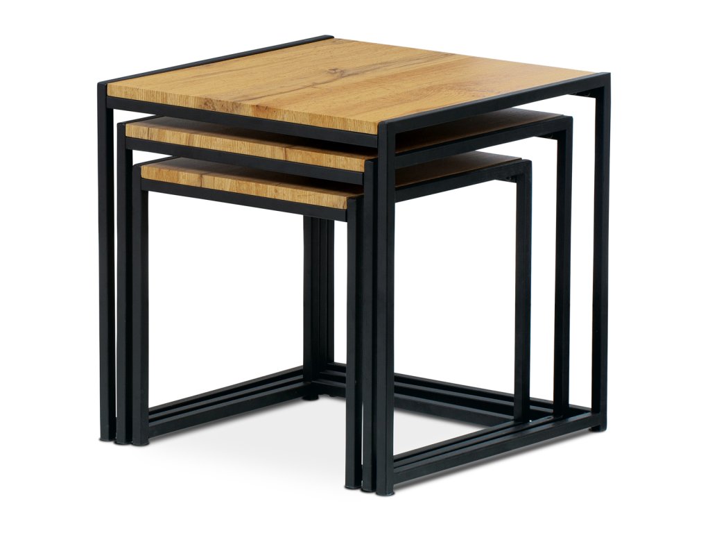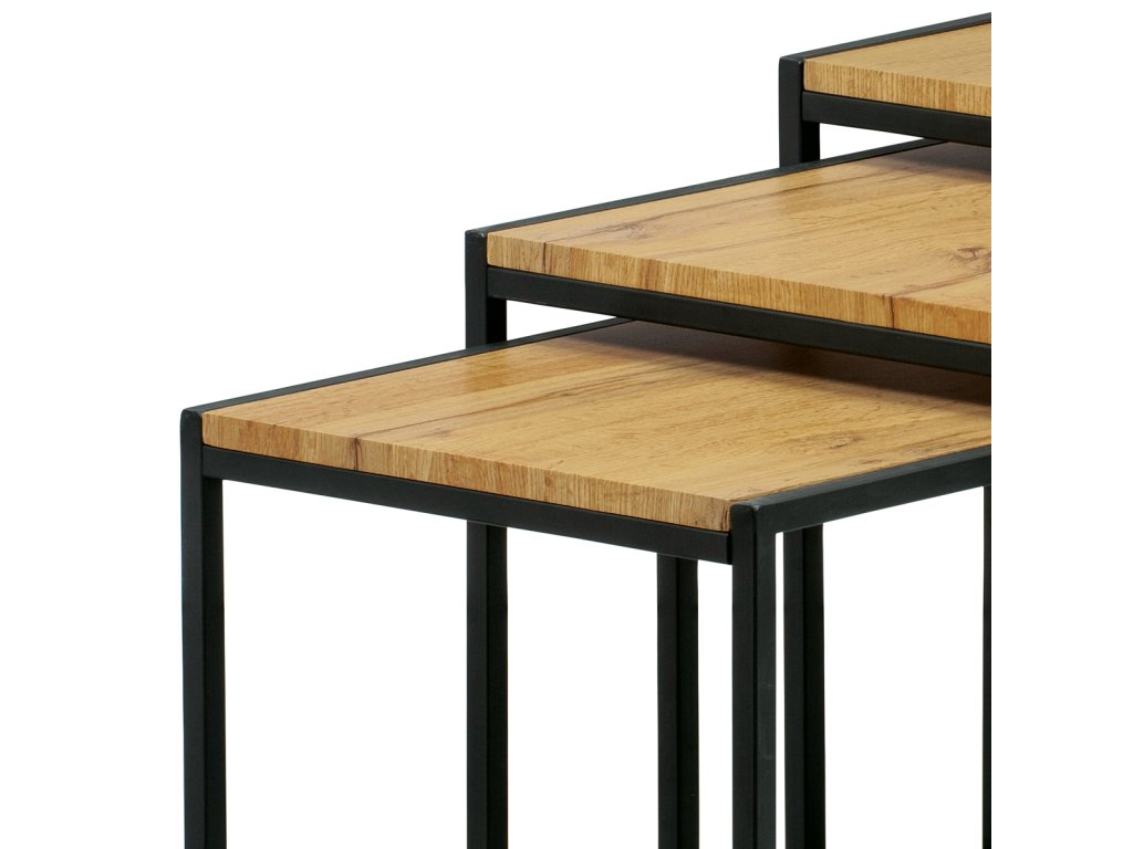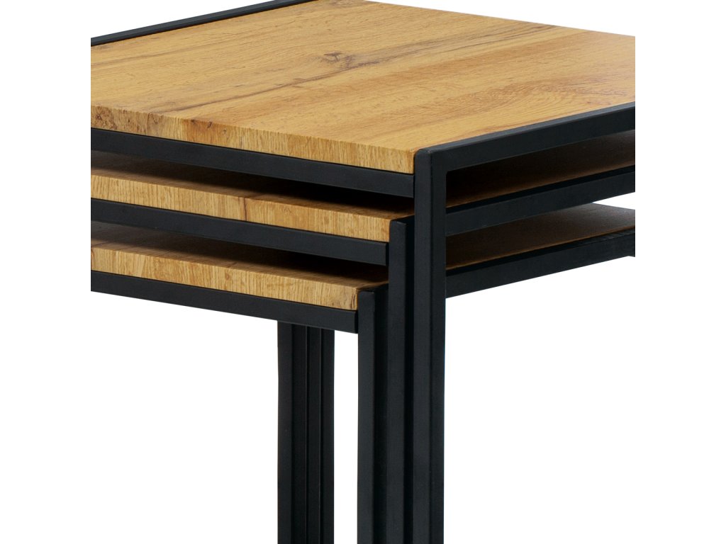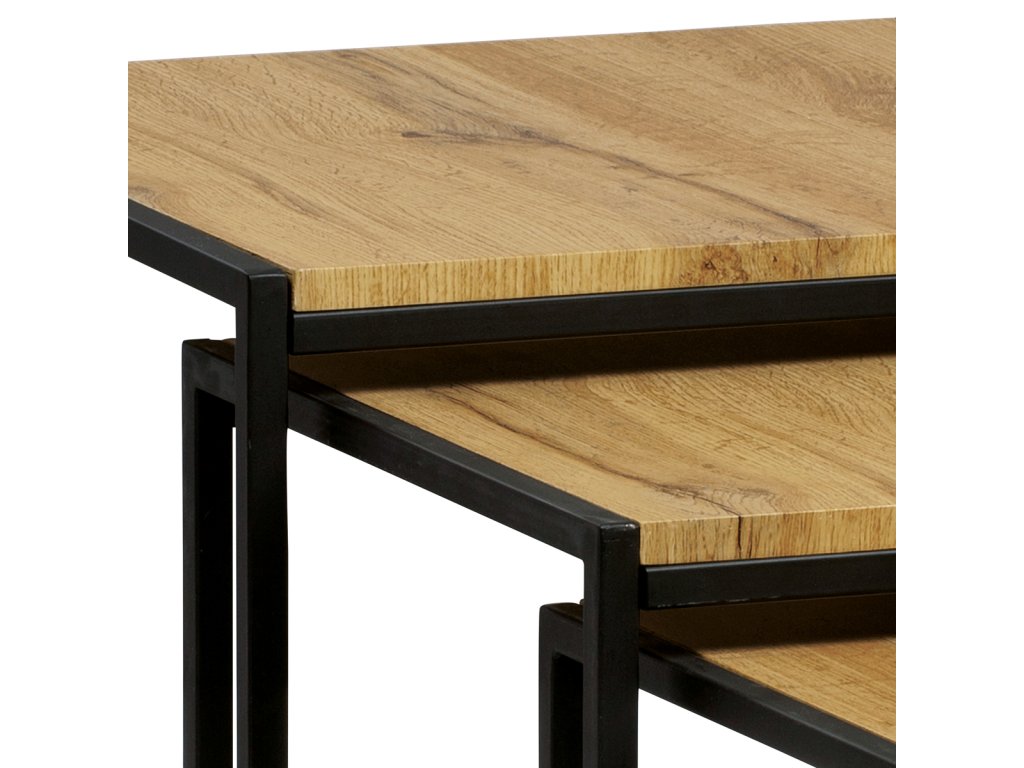 Set 3 ks odkládacích stolků, MDF, dekor divoký dub, kov, černý lak