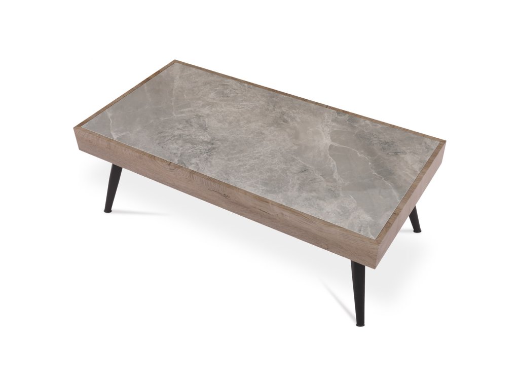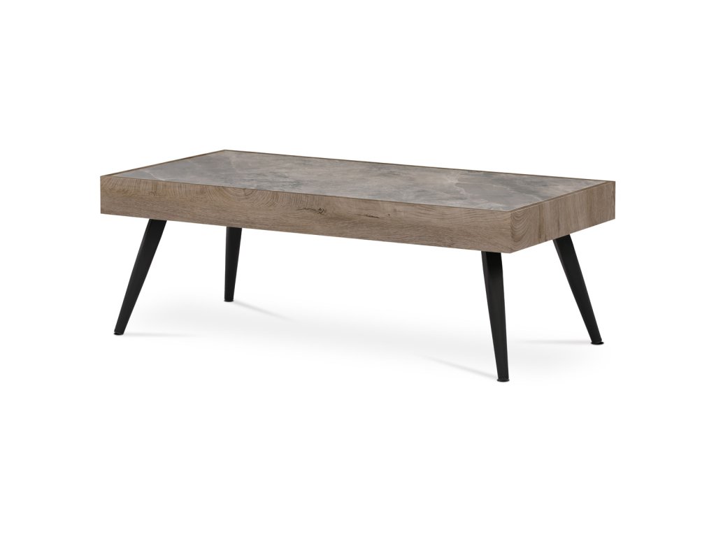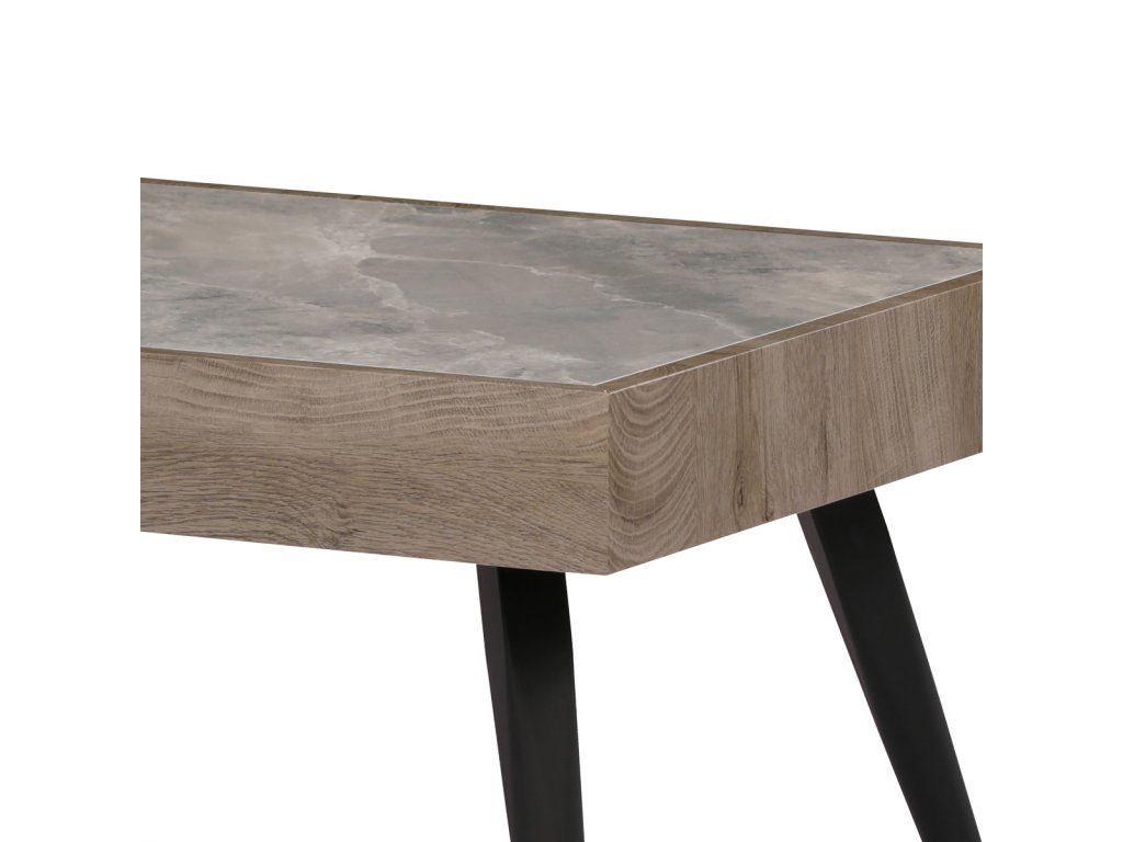 Stůl konferenční, deska slinutá keramika 120x60, šedý mramor, nohy černý kov, světle hnědá dýha