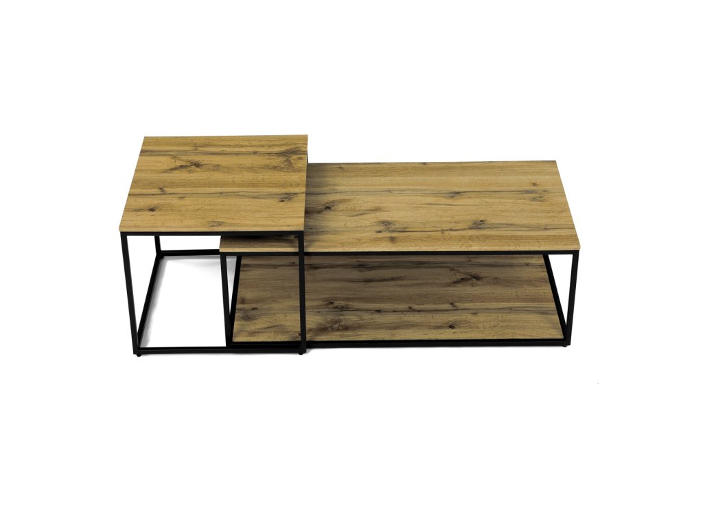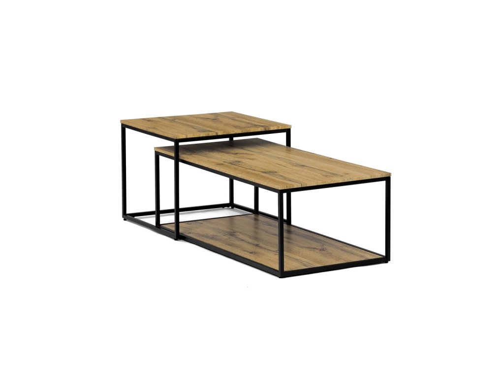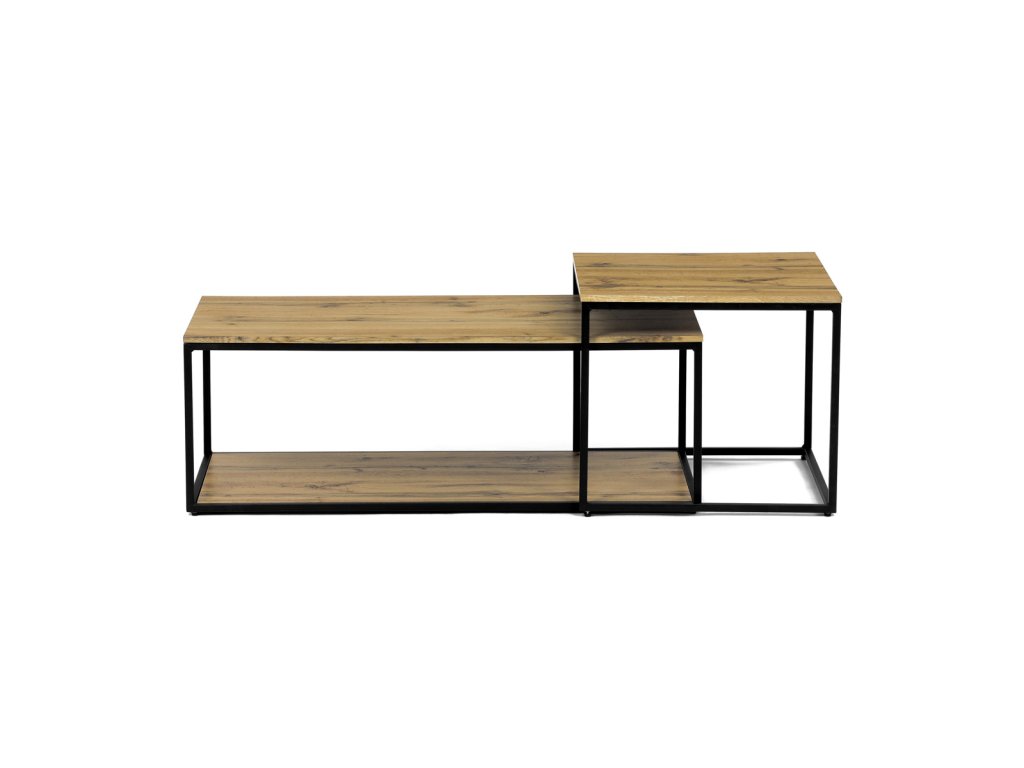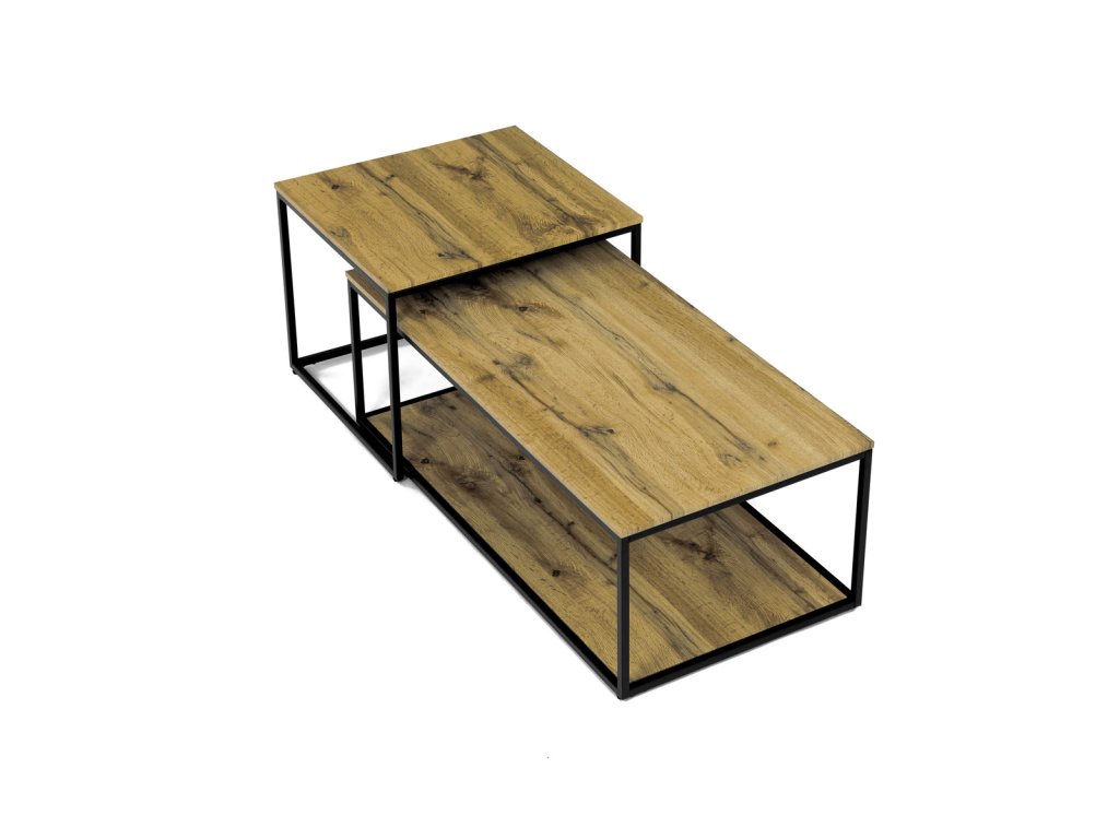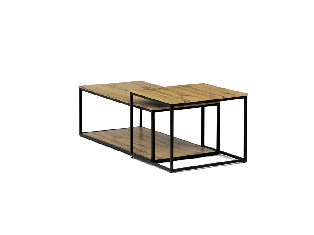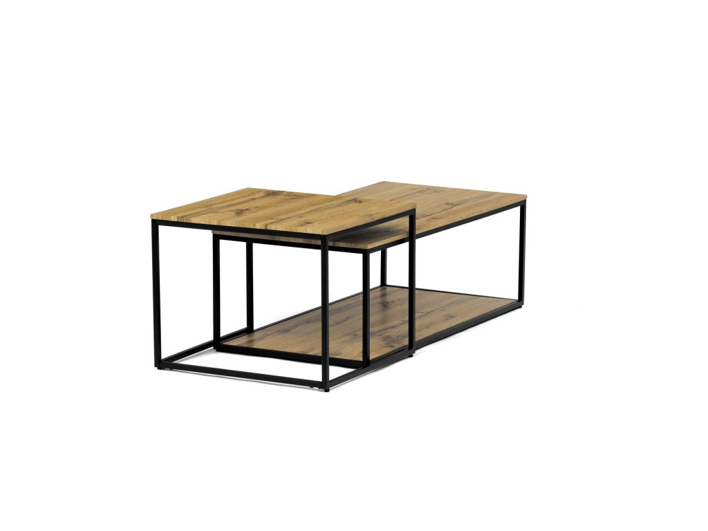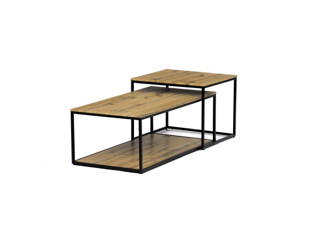 Stůl konferenční, set 2 ks, MDF deska, dekor divoký dub, kovová podnož, černý lak