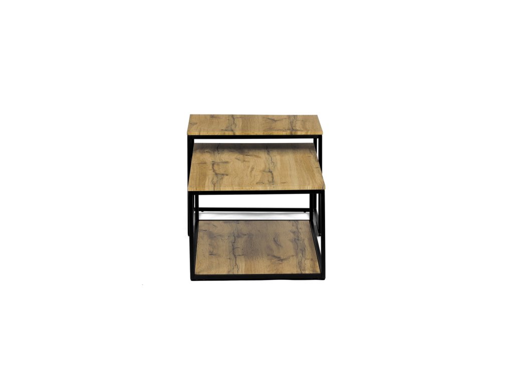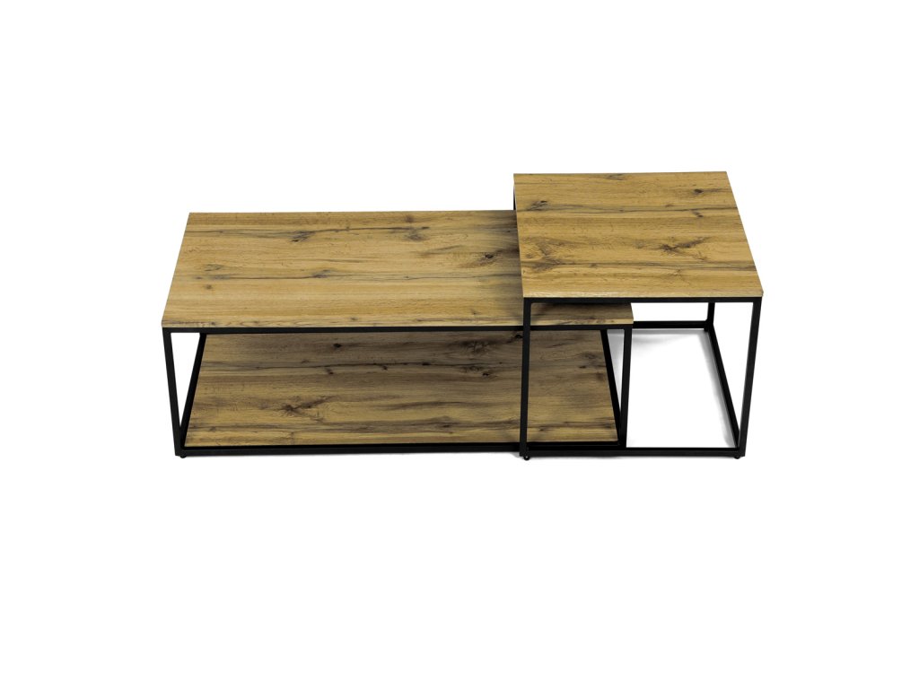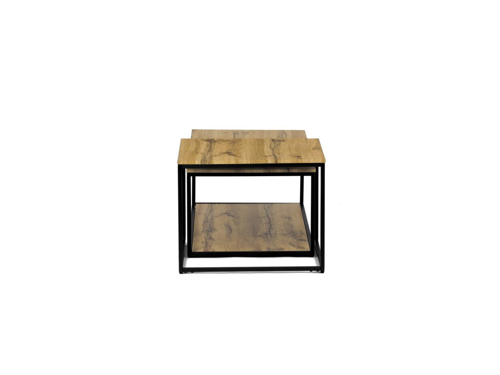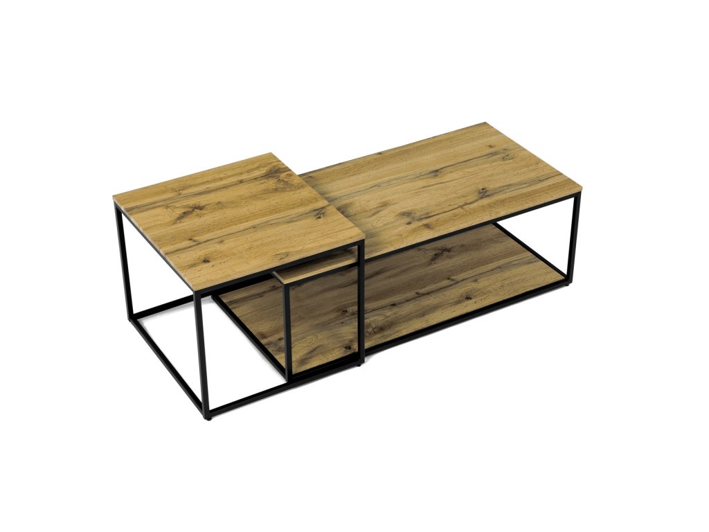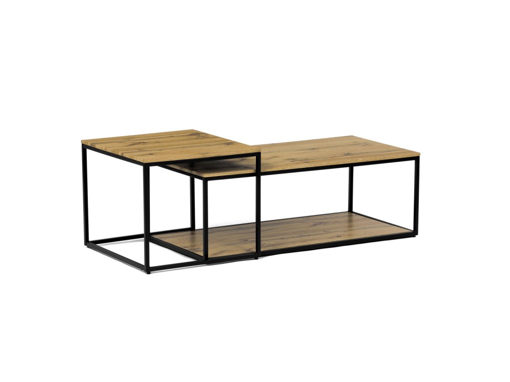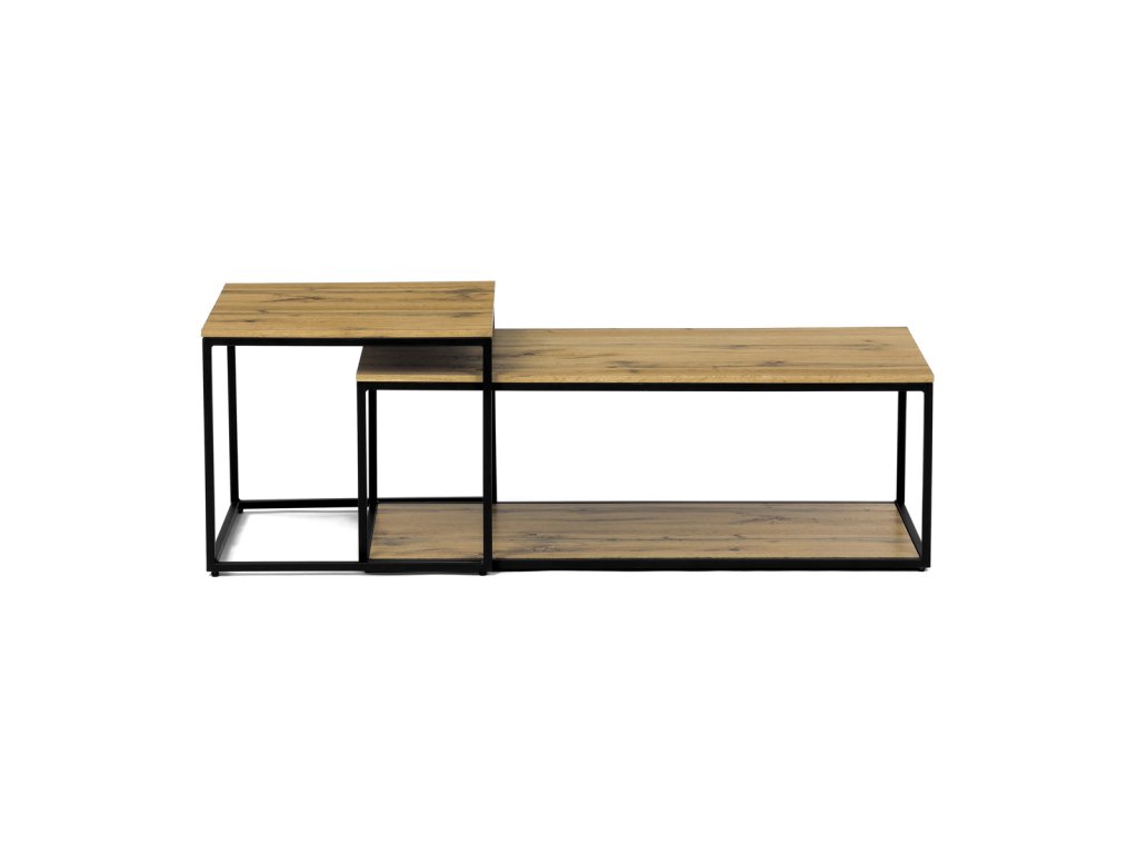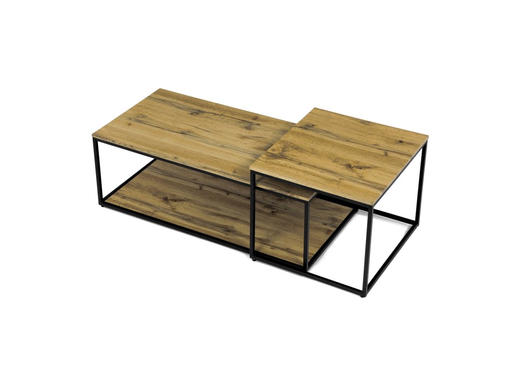 Stůl konferenční, set 2 ks, MDF deska, dekor divoký dub, kovová podnož, černý lak