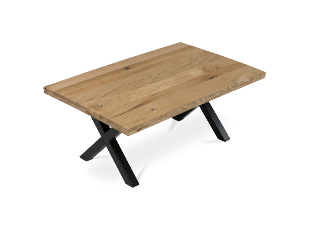 Stůl konferenční 110x70x45cm, masiv dub, rovná hrana, kovová noha "X" 5x5 cm