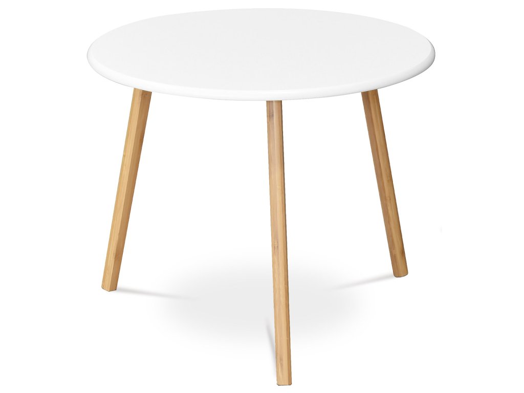 Stůl konferenční 60x60x50 cm, MDF bílá deska, nohy bambus přírodní odstín