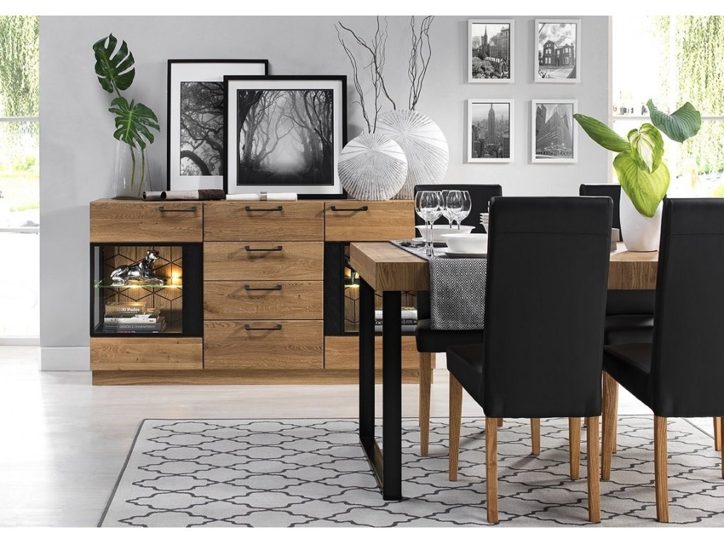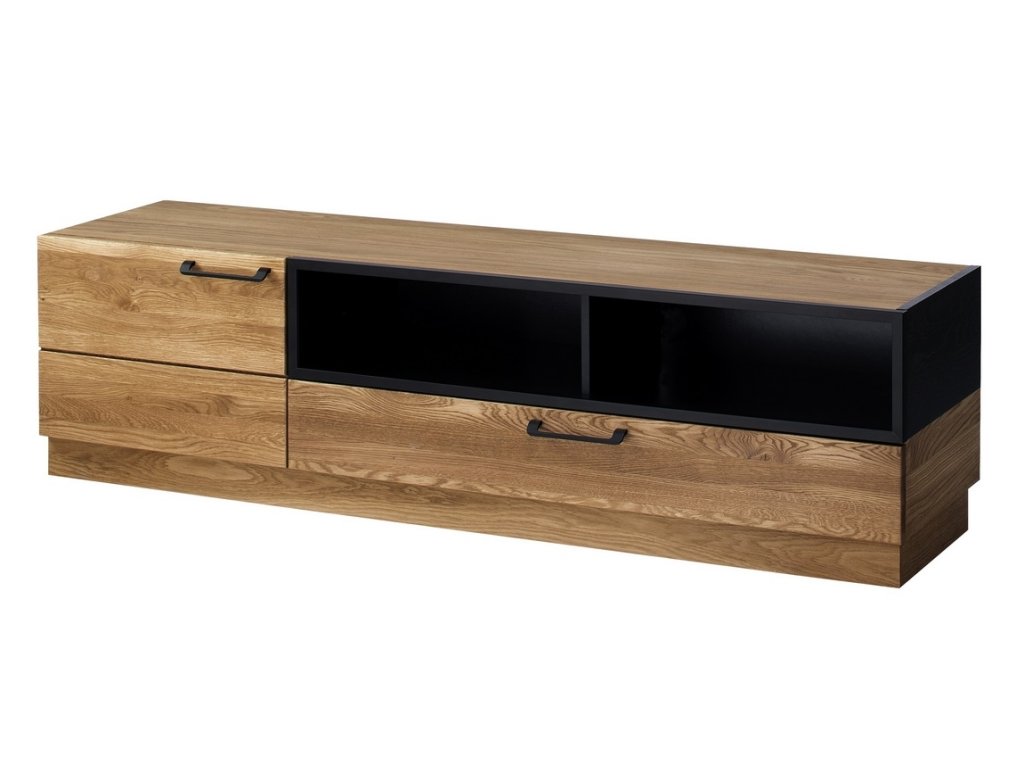 Televizní stolek s dvířky a zásuvkou ze sektorové řady MOSAIC. Moderní provedení masivního leštěného dubu s kovovými prvky dodá jedinečný vzhled vaší jídelně nebo obývacímu pokoji. Povrch vnějších částí je ošetřen olejem - dub medový nebo lakovaný - černý mat. Korpus je doplněn z vnější strany přírodní dýhou, vnitřní strana je vyrobena z desky LTD v barvě přírodního dřeva. Dvířka jsou vyrobeny z leštěného masivního dubu. Úchyty jsou kovové černé. Dodáváme již ve smontovaném stavu.Doplňkové parametry