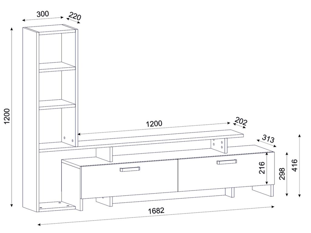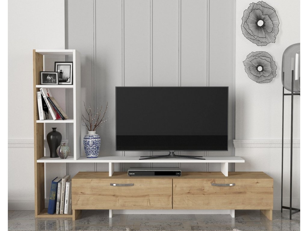 Televizní stolek s regálem SHENDI bílá/cordoba