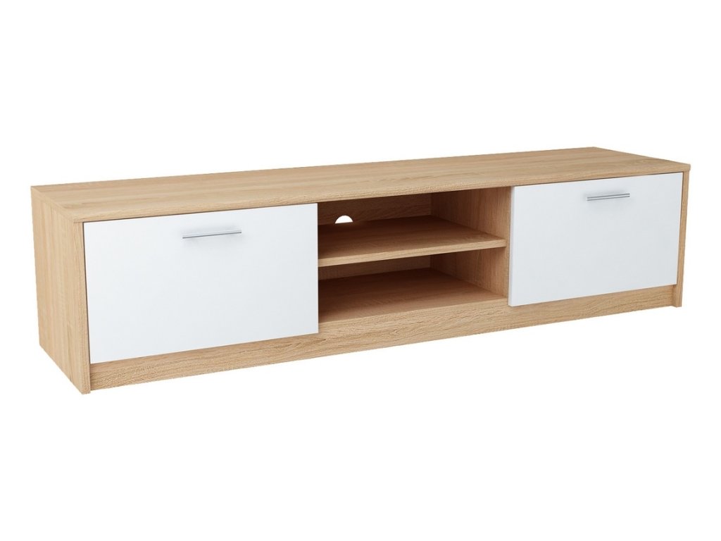Dvoudveřový RTV stolek v moderním provedení. Korpus je v barevném provedení dub sonoma a dvířka jsou bílé barvy. Korpus i dvířka jsou vyrobena z kvalitního lamina. Lamino je odolné vůči vysokým teplotám, poškrábání a nárazům, hraněné ABS páskou. Jasně viditelná struktura dřeva. Dodáváme v demontovaném stavu.Doplňkové parametry