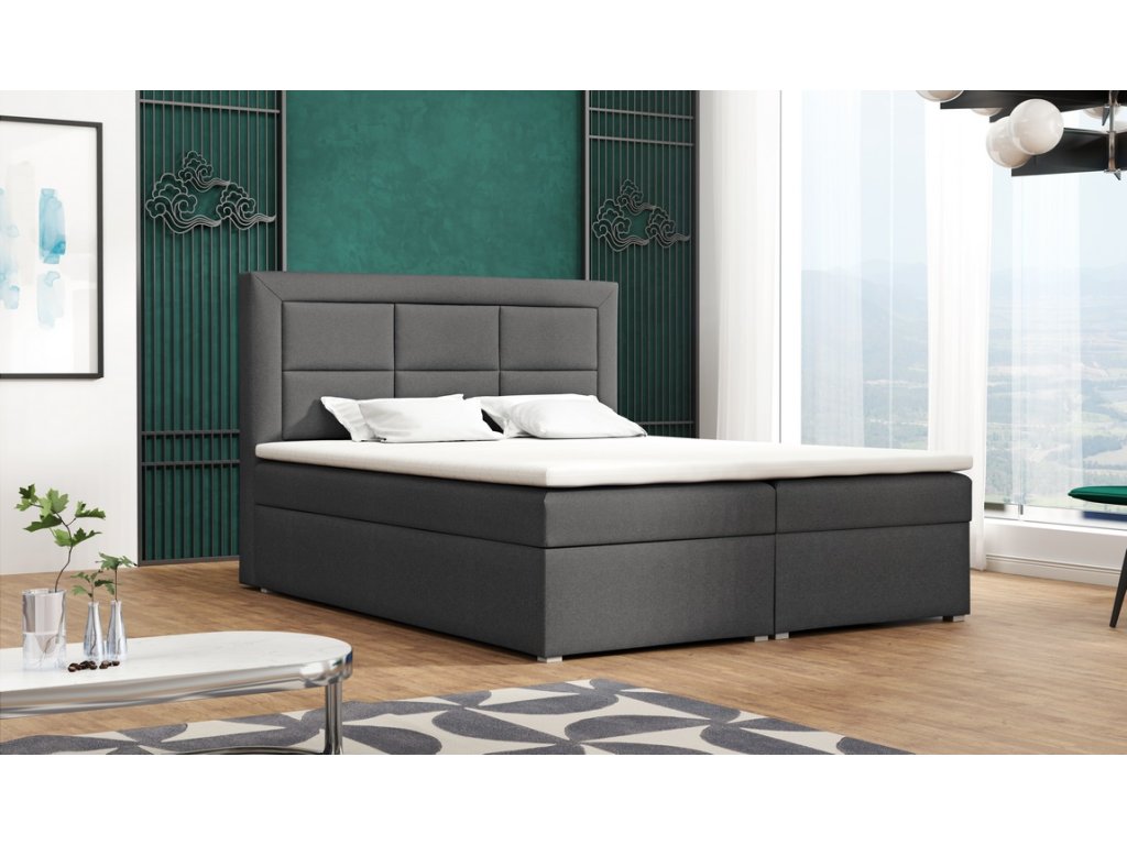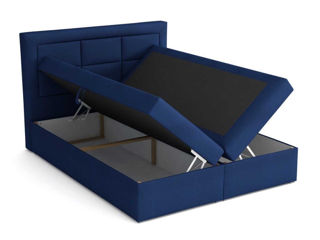 Elegantní kontinentální postel moderního vzhledu s vysokým čelem s dekoračním prošíváním. Postel se dodává zároveň s matrací - boxspring styl. Pevná konstrukce postele je potažena látkou v barvě dle Vašeho výběru. Na ní se nachází vysoká bonelová matrace potažena stejnou látkou. Na ní je druhá tenká matrace v celku vyrobena z kvalitní hrubé PUR pěny tzv. topper (výška cca 5 cm). Ložní plocha činí 160 x 200 cm. Výška ložné plochy od země je cca 53 cm. Rozměry úložného prostoru - 2x (197x77x30 cm). Úložný prostor je k dispozici nadzvednutím matrace z boční strany postele.Doplňkové parametry