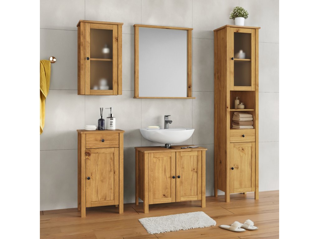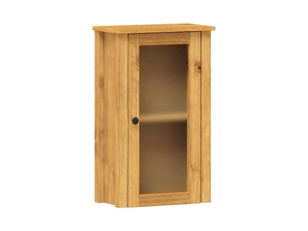 materiál masiv borovice, voskované provedení jedna prosklená dvířka, za nimi jedna police maximální nosnosti uvedeny v návodu k montáži součást sestavy PORTO voskDoplňkové parametry