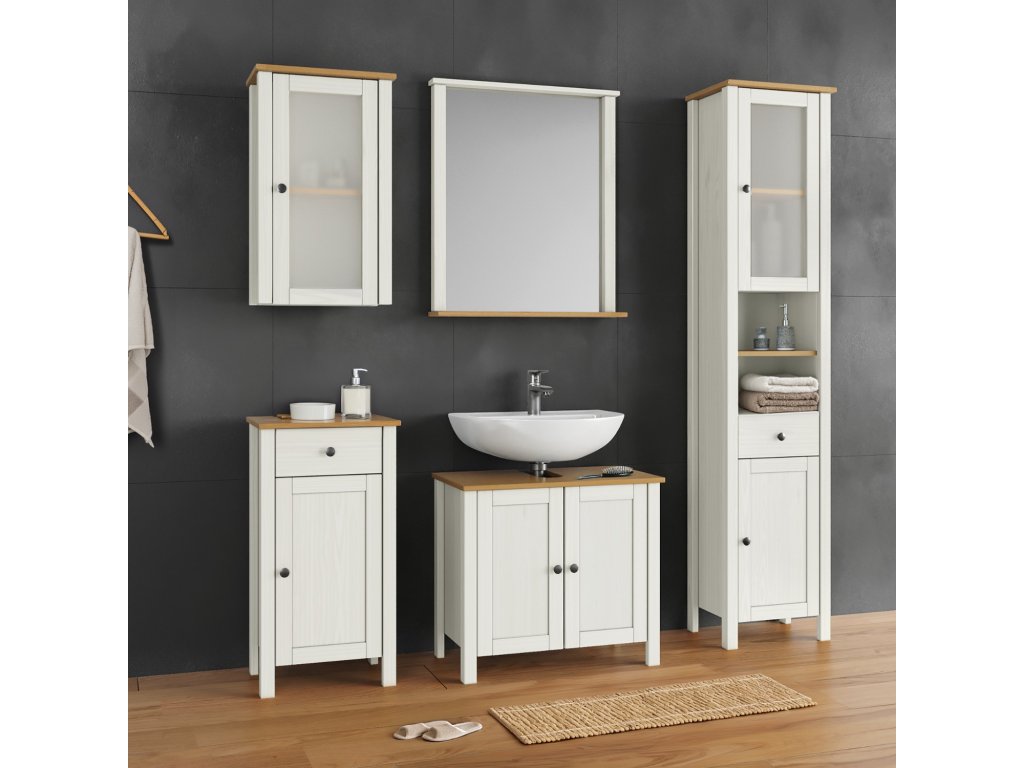 materiál masiv borovice, barevné provedení bílá / buk sestava vysoké skříňky 372714B, závěsné skříňky 372724B, skříňky 372725B, skříňky pod umývadlo 372729B a zrcadla 372732B rozměr vysoké skříňky (š/h/v) 42 × 30 × 190 cm rozměr závěsné skříňky (š/h/v) 42 × 25 × 70 cm rozměr skříňky (š/h/v) 42 × 30 × 80 cm rozměr skříňky pod umývadlo (š/h/v) 60 × 35 × 67 cm rozměr zrcadla (š/h/v) 67 × 12 × 78 cmDoplňkové parametry