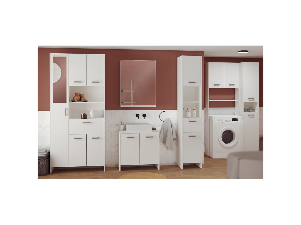 barevné provedení bílá dvoje dvířka, jedna police, rozměr police (š/h) 61 × 26 cm maximální nosnosti uvedeny v návodu k montáži součást sestavy KORALDoplňkové parametry