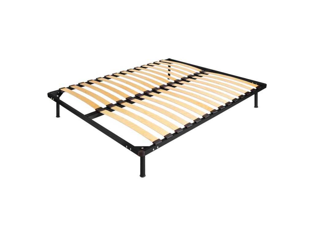 kovový rám a nohy, barevné provedení černá 2× 14 dřevěných lišt, černé plastové spojky doporučený rozměr matrace 160 × 200 cm nebo 2 kusy 80 × 200 cmDoplňkové parametry