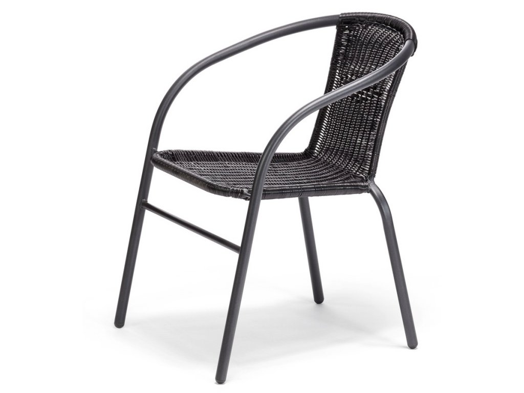 Balkonová židle. Díky volbě materiálu je lehce omyvatelná a její údržba není nijak náročná. Křeslo je z ocelové konstrukce, sedák je z plastu. Výška sedu křesla je 42 cm, hloubka sedu je 39 cm. Barevné provedení - černá.