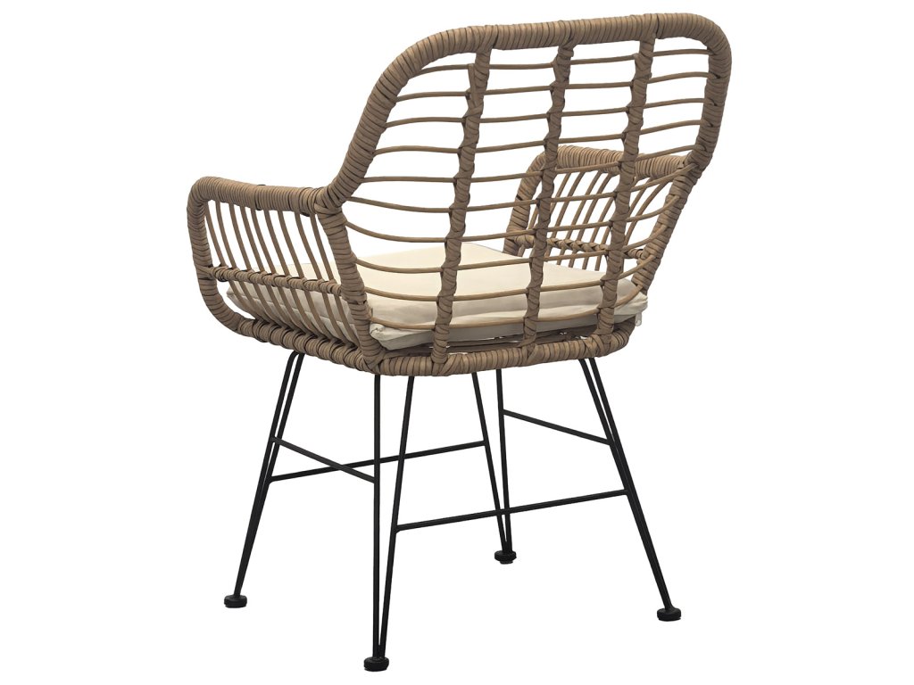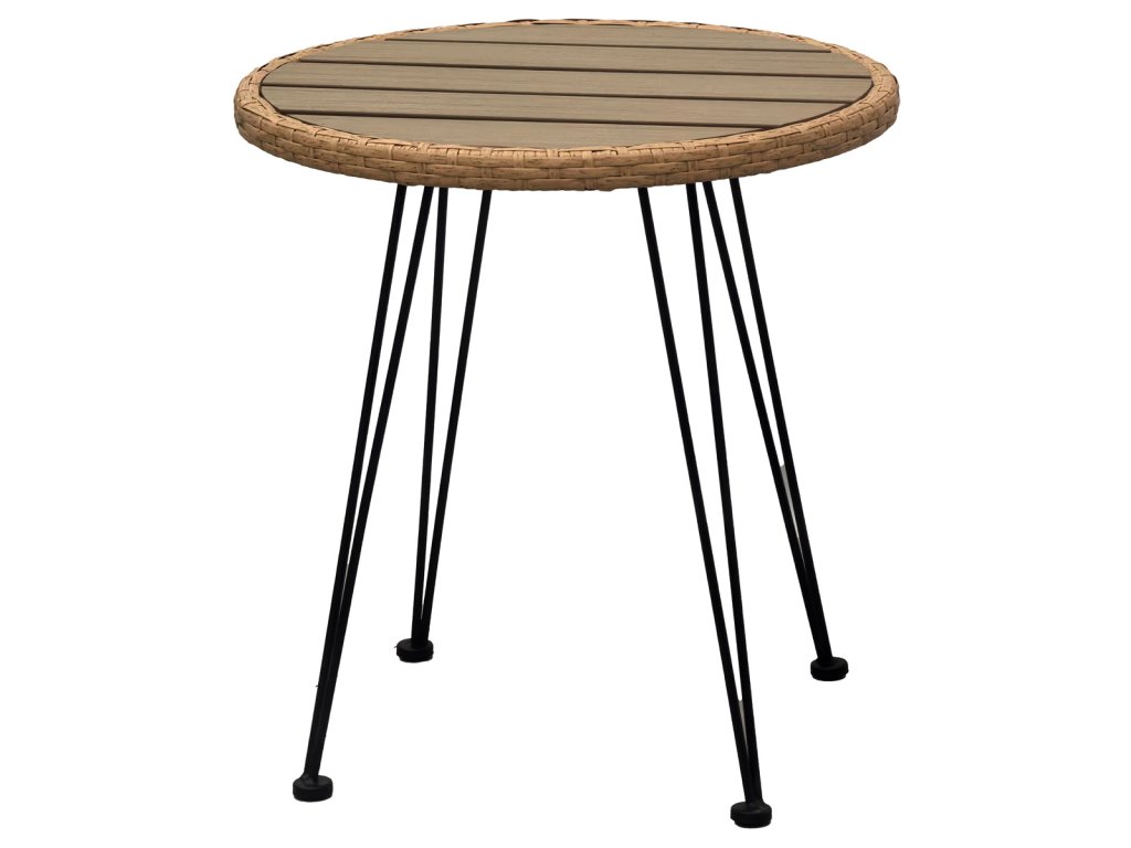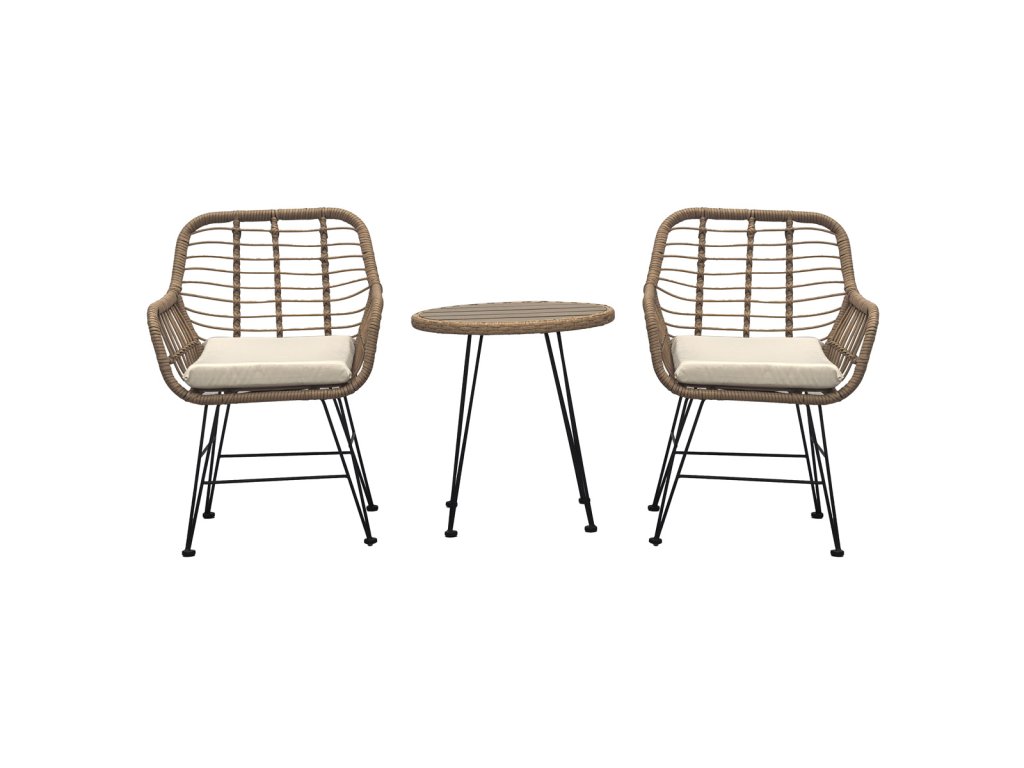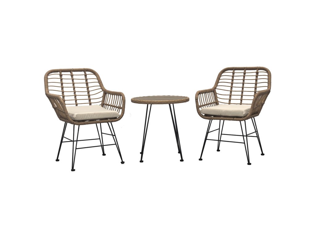 Relaxační set stůl + 2 židle, kov, umělý ratan, látka béžová, deska stolku polywood