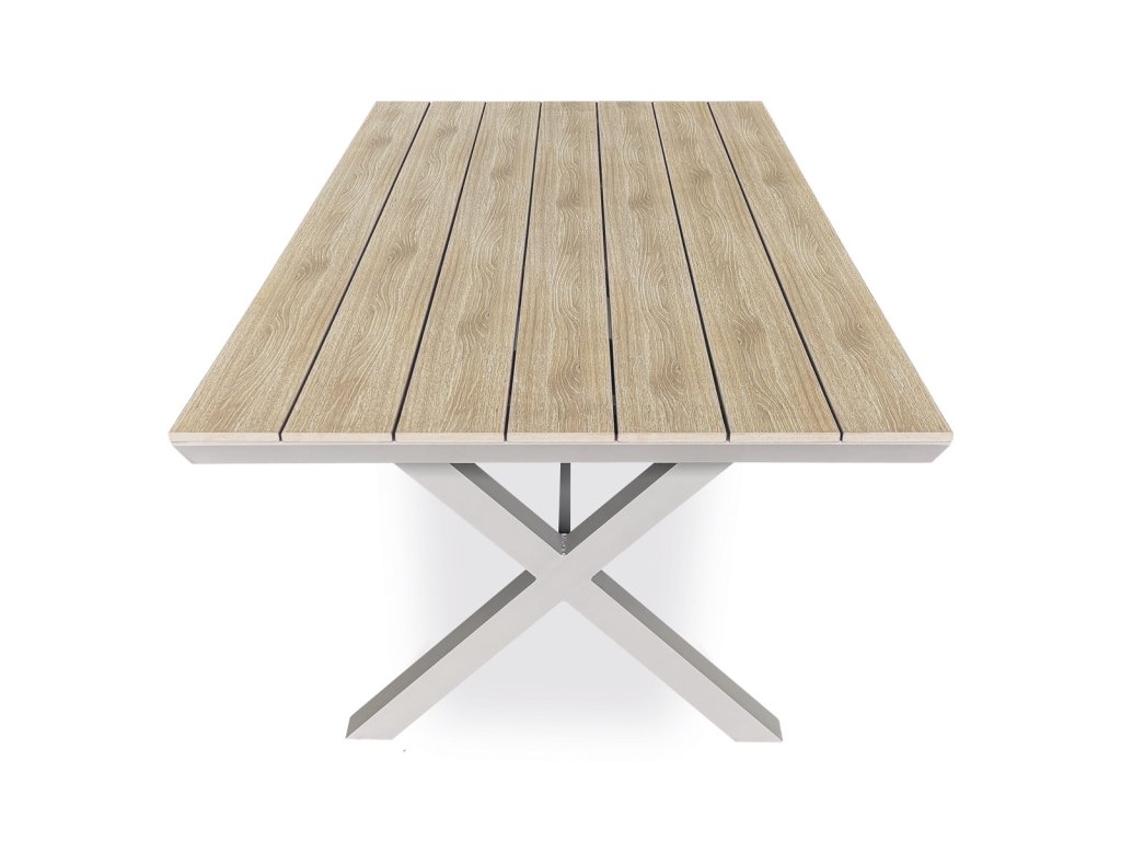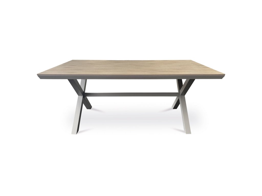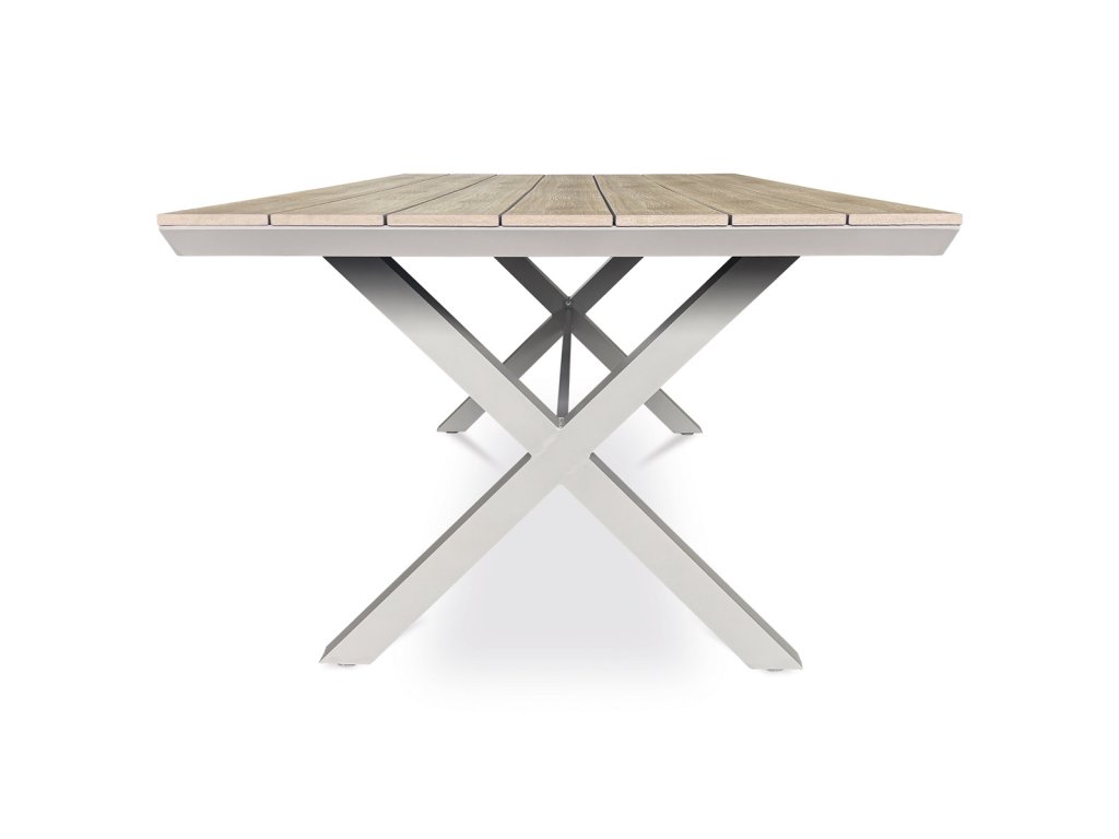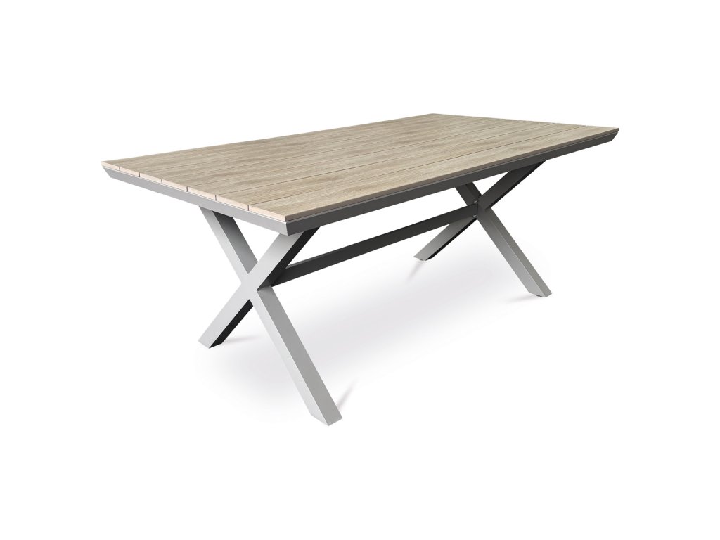 Stůl zahradní 180x100x75, deska polywood v dekoru světlého dubu, hliníková konstrukce, béžová barva