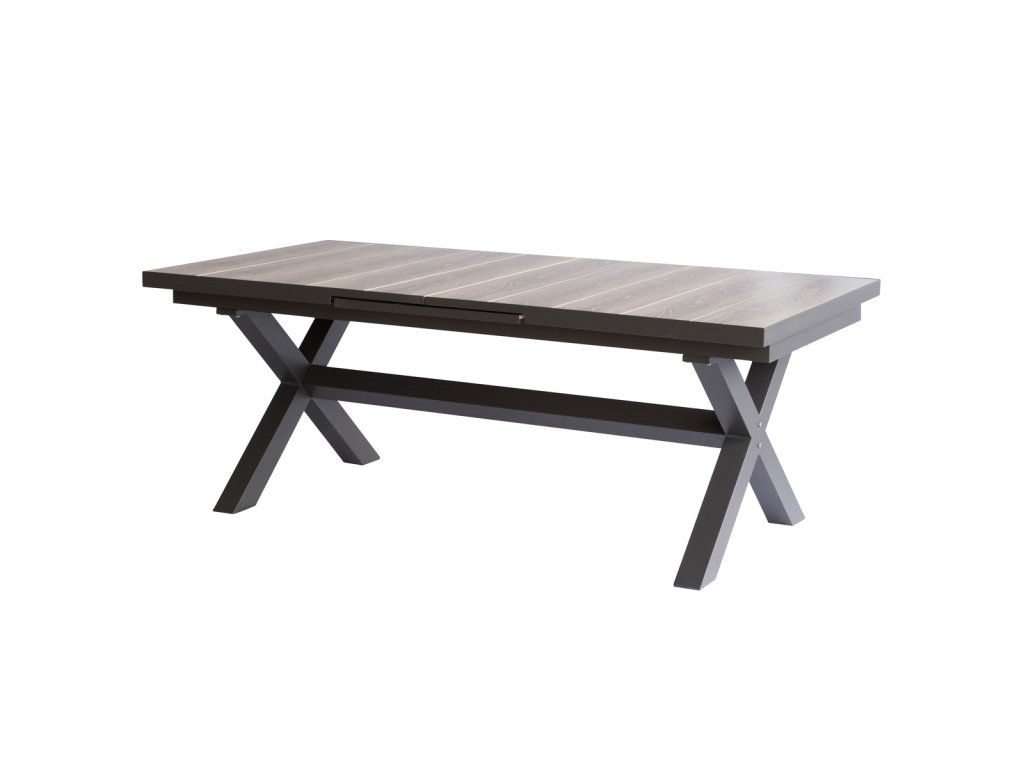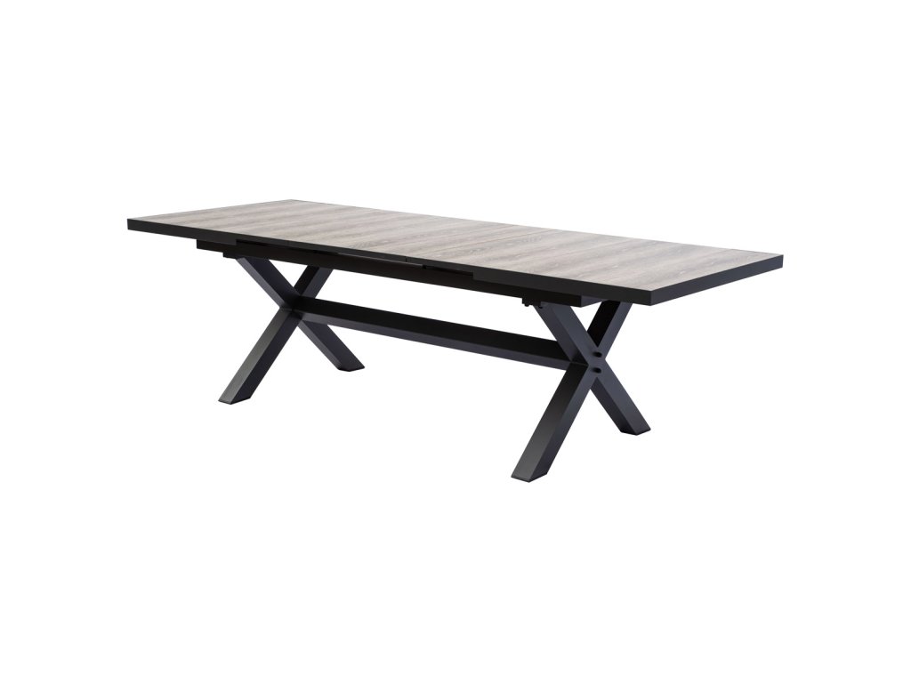 Stůl zahradní rozkládací, keramická deska v dekoru dub 200+60x100x77 cm, hliníková konstrukce