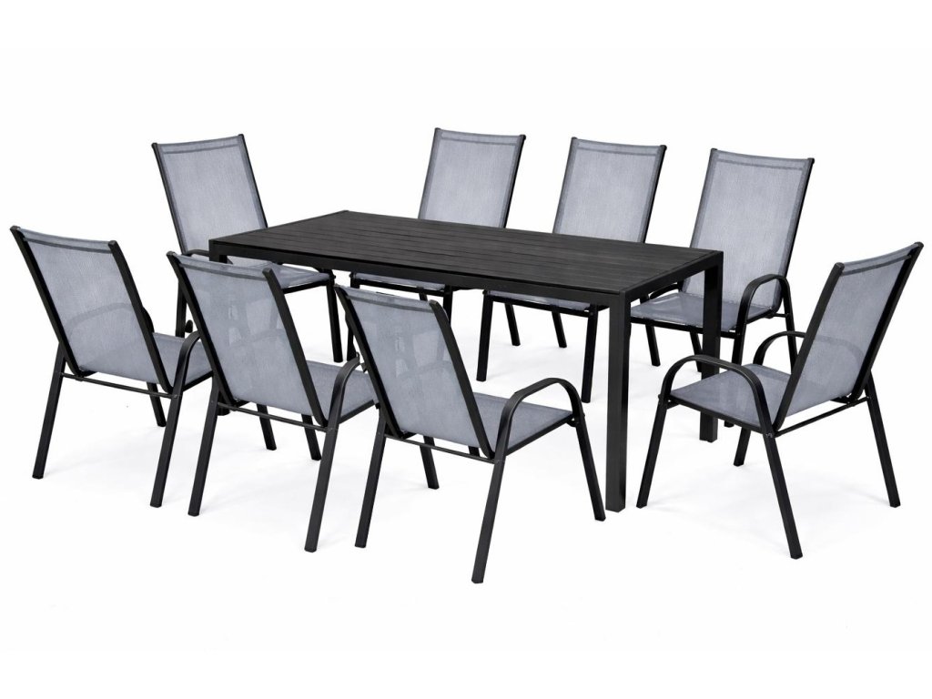 Zahradní sestava BADEN + DARMA (1x stůl + 8x křeslo) černá/šedá