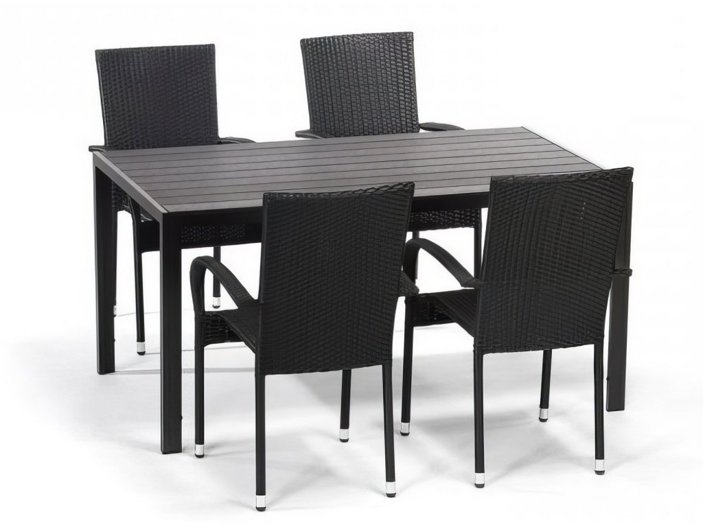 Zahradní sestava BADEN + ESSEN (1x stůl + 4x křeslo) černá
