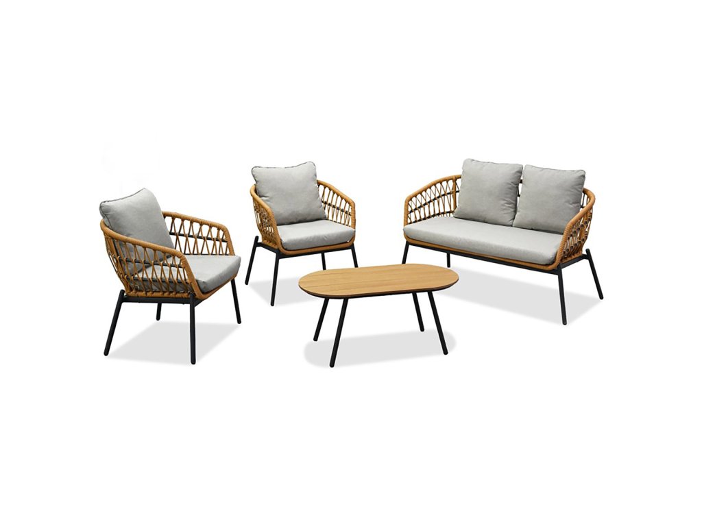 Tato zahradní sedací souprava značky Autronic je perfektní volbou pro každou venkovní terasu či zahradu. Je vyrobena z odolného polyratanu v přírodním odstínu, který dodává nábytku svěží a moderní vzhled. Konstrukce z kovu s práškovou úpravou v antracitové barvě zaručuje dlouhou životnost a stabilitu. Voděodolné polštáře poskytují maximální pohodlí a jsou ideální pro venkovní použití za každého počasí. Deska stolku je vyrobena z polywood materiálu, který má velmi dlouhou životnost a je odolný proti vnějším vlivům počasí.Tento set kombinuje styl a funkčnost, ať už chcete relaxovat nebo uspořádat venkovní posezení s přáteli. Souprava je navíc snadno udržovatelná a velmi praktická.Doplňkové parametry