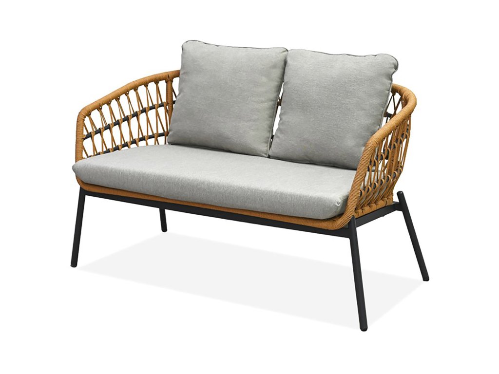 Zahradní set 1+1+2, stůl 90x48, židle a dvojsedačka, přírodní umělý ratan, kov antracit, světle šedá látka