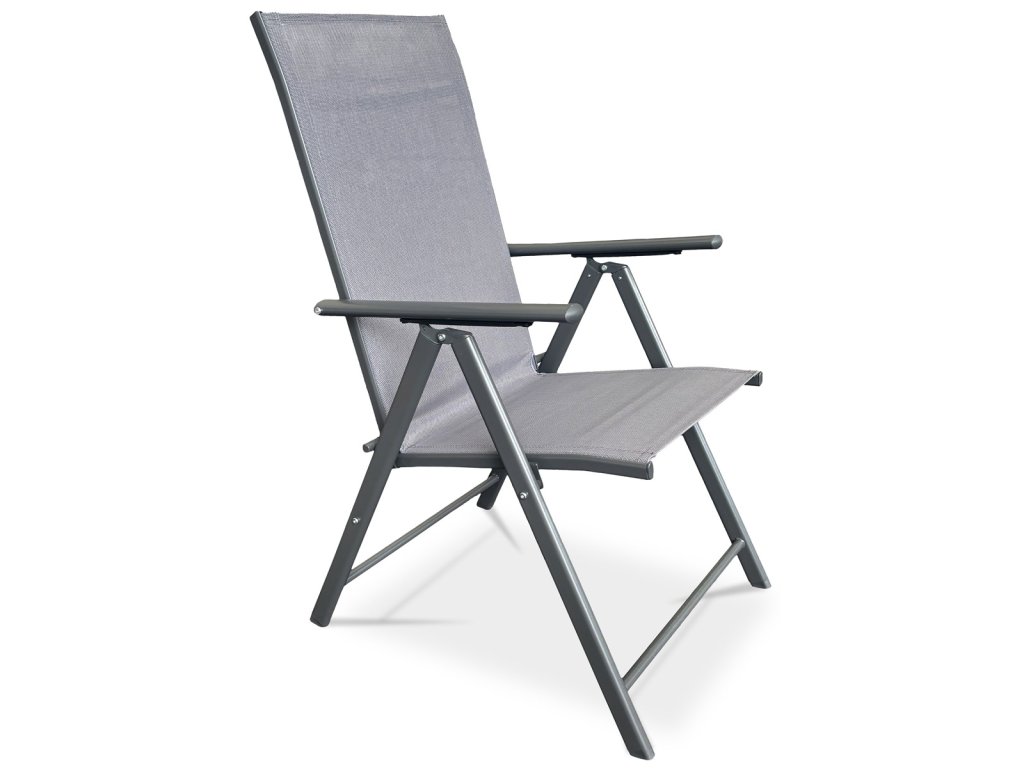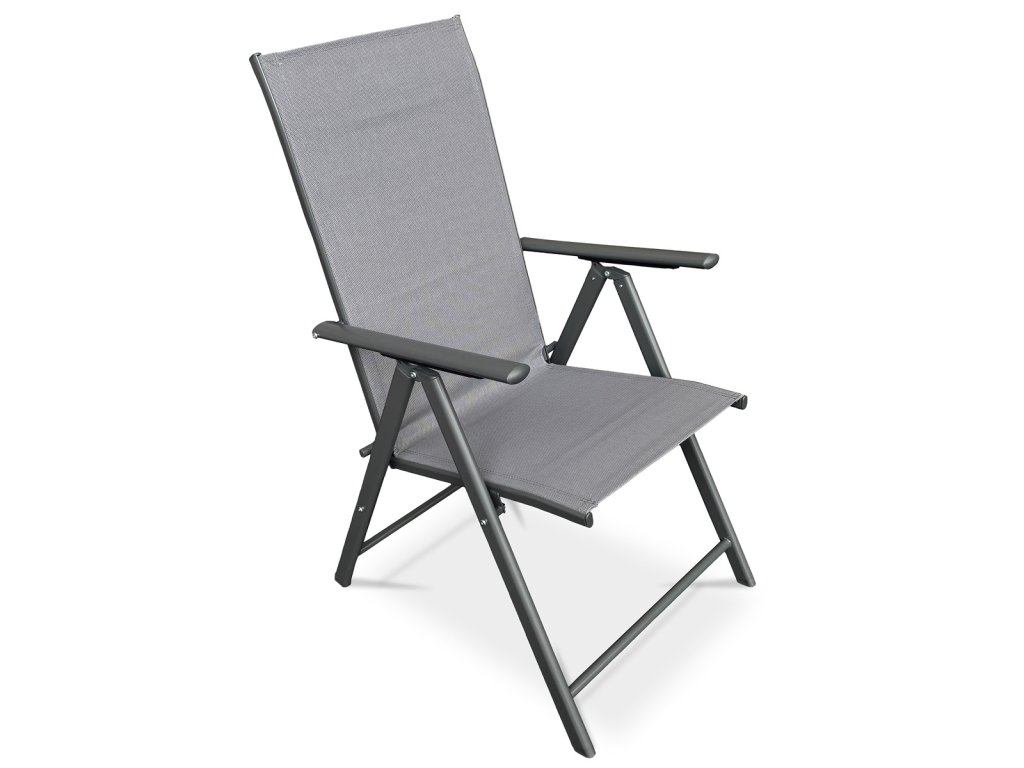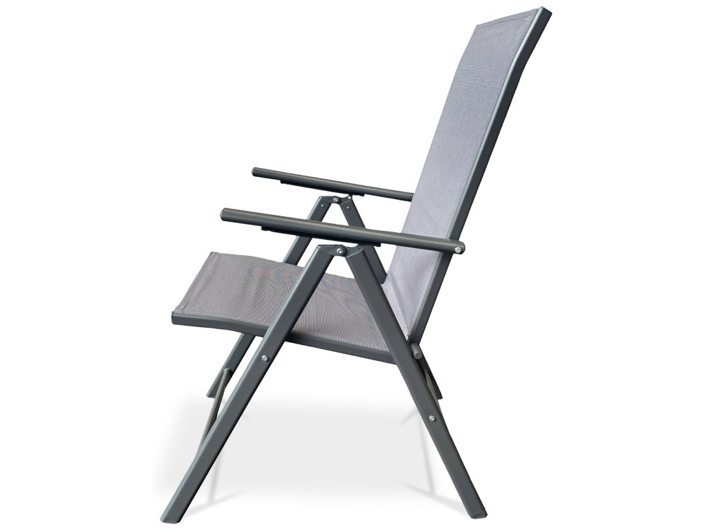 Židle zahradní, nastavitelný sklon, šedý textilen, šedá kovová konstrukce