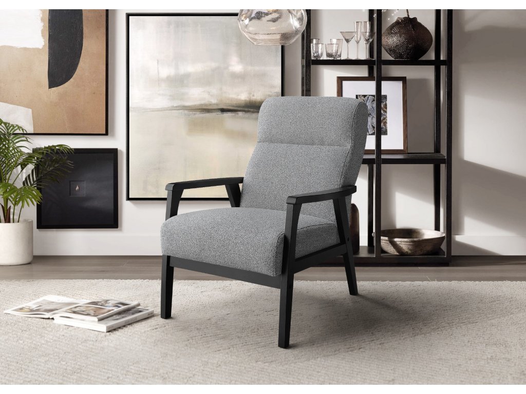 Elegantní celočalouněné křeslo v retro stylu bude ozdobou každého interiéru. Nožky křesla jsou ze dřeva v barvě wenge, čalounění je z látky v barvě šedá látka JS2155-23. Pohodlí a elegance v kvalitním provedení ve Vašem obýváku, dětském pokoji či kanceláři. Pohodlné sezení zaručuje v sedáku vlnovcová pružina v kombinaci s PUR pěnou ( T-24 ), opěrná část PUR pěna ( T-26 ).Doplňkové parametry