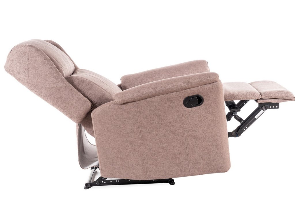 Rozkládací čalouněné křeslo. Jednoduchým mechanickým pohybem z křesla uděláte pohodlnou pohovku s opěrkou pod nohy. Čalounění je z látky světle hnědé barvy. Celková hloubka křesla je 93 cm, po rozložení 165 cm. Hloubka sedáku je 53 cm, výška sedáku je 47 cm. Pohodlí a elegance v kvalitním provedení ve Vašem obýváku, dětském pokoji či kanceláři. Dodáváme v demontovaném stavu.Doplňkové parametry