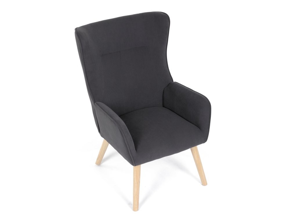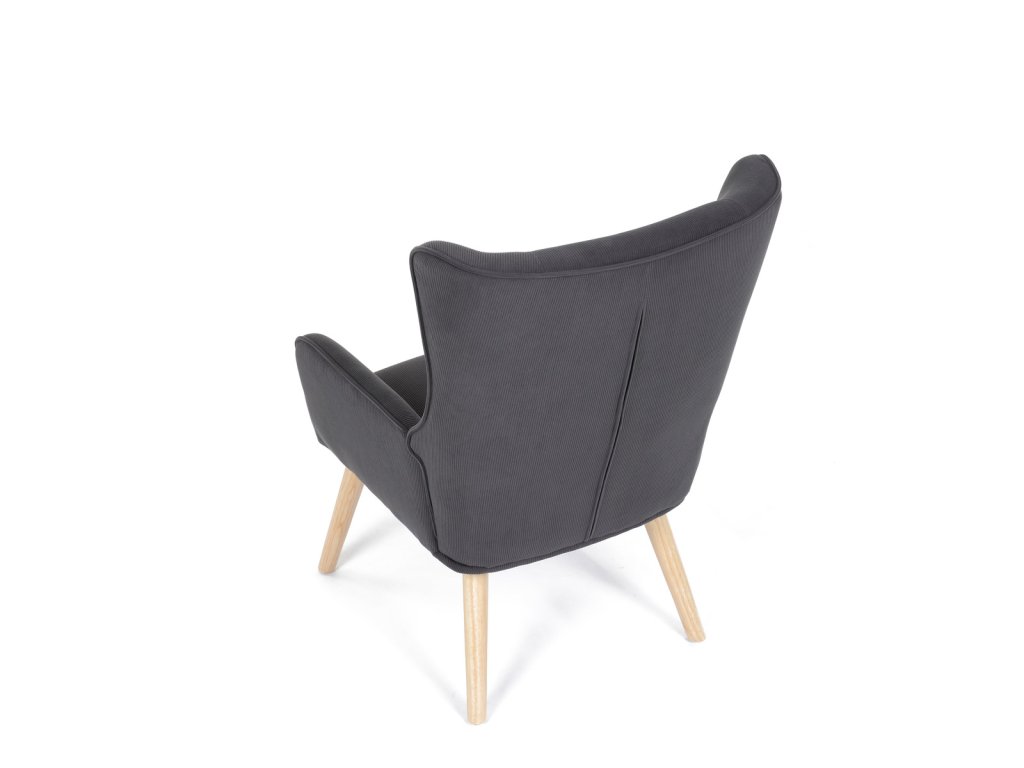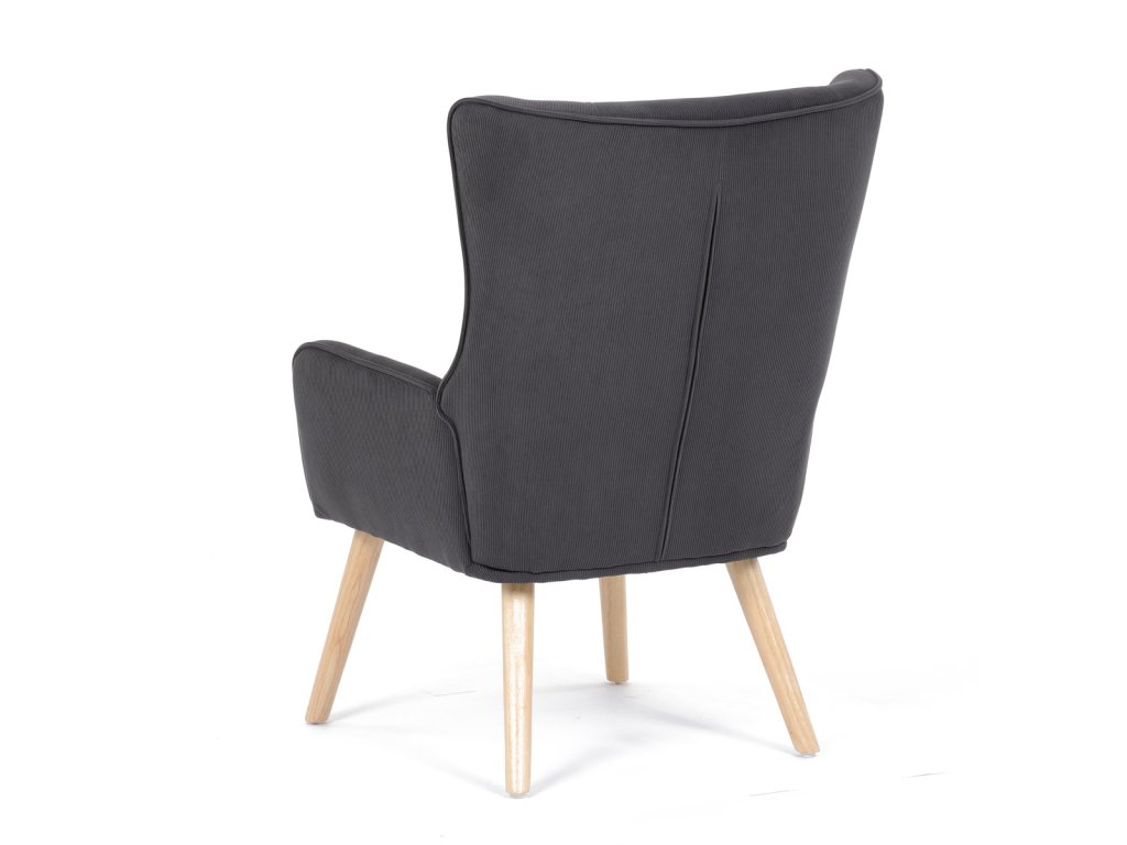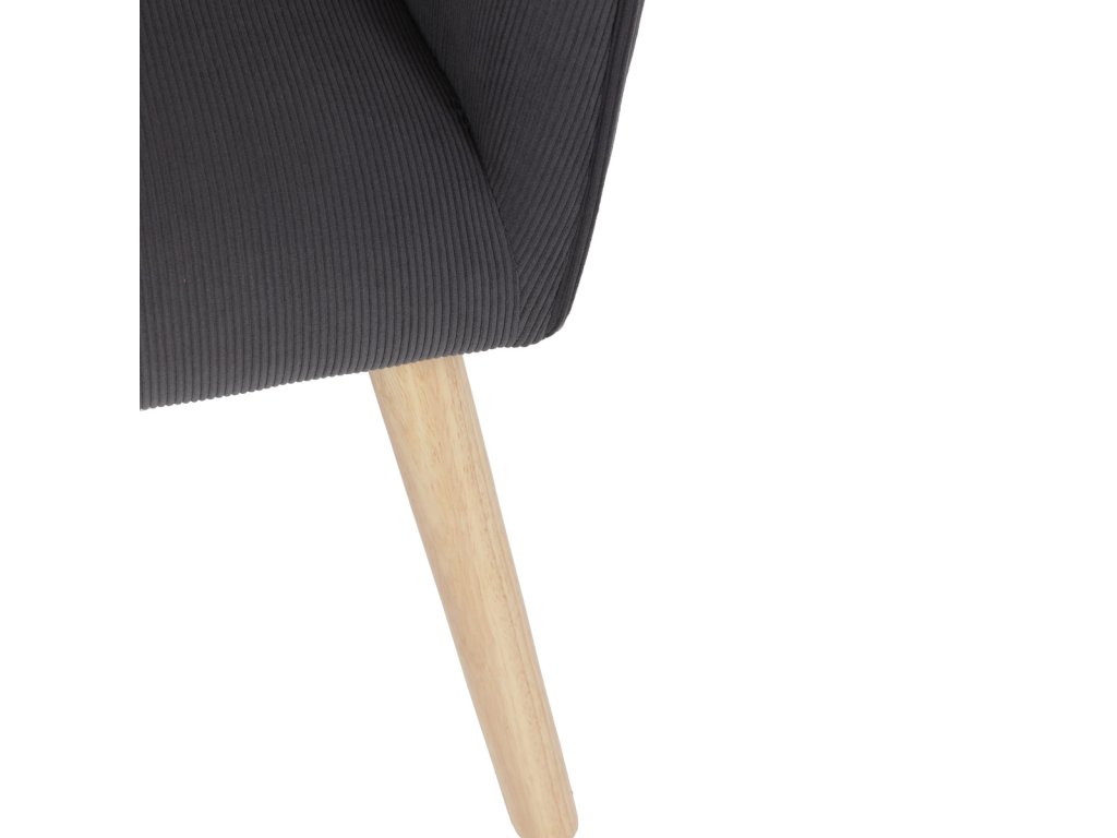 Křeslo, potah šedá manšestrová látka, dřevěné nohy, masiv kaučukovník