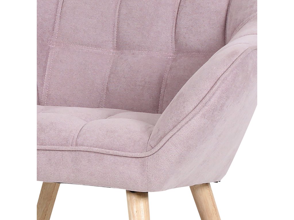 Křeslo s potahem ze starorůžové látky nabízí příjemný komfort díky měkkému čalounění s designovým prošitím, které podtrhuje jeho moderní vzhled. Masivní nohy z kaučukovníku zajišťují pevnou a stabilní oporu, přičemž jejich přírodní dřevěný odstín dodává křeslu teplý a přirozený charakter. Ergonomicky tvarované opěradlo a široká sedací plocha podporují pohodlné posezení v obývacím pokoji či pracovně. Křeslo je navrženo bez rozkládací funkce, což zdůrazňuje jeho účel jako stylového a pohodlného samostatného sedacího prvku. Celková kombinace kvalitních materiálů a precizního zpracování zaručuje dlouhou životnost a stabilitu nábytku.Doplňkové parametry