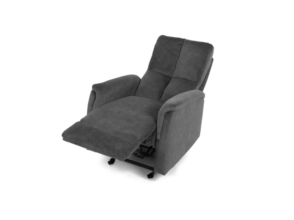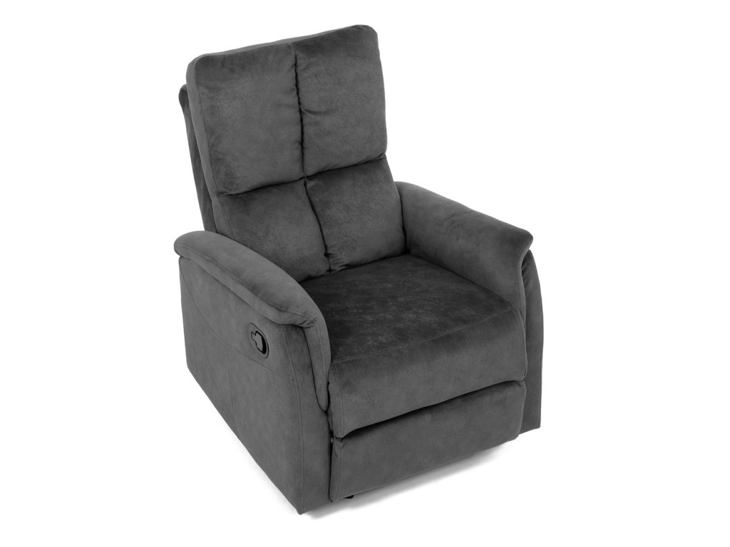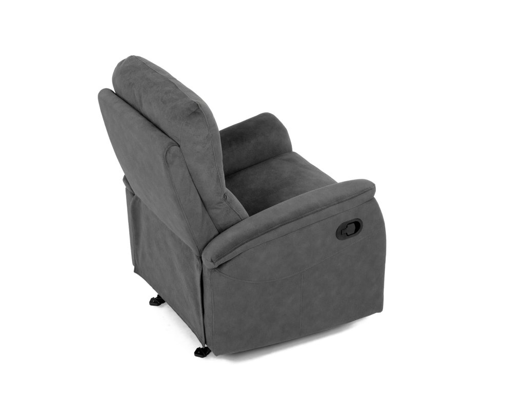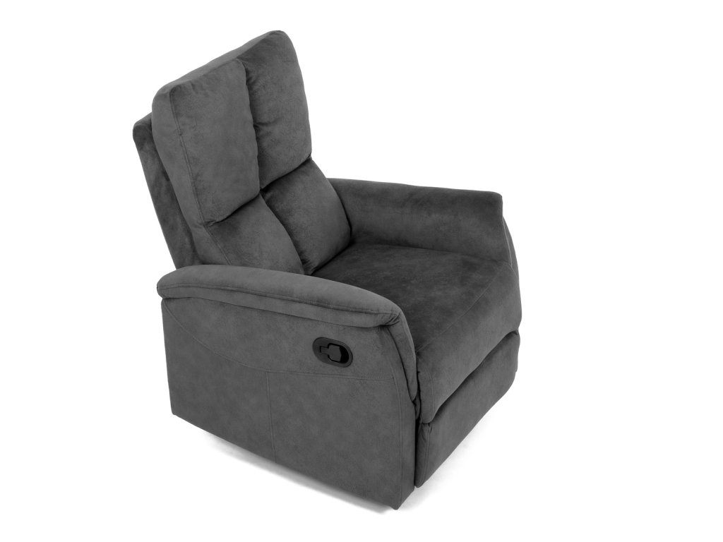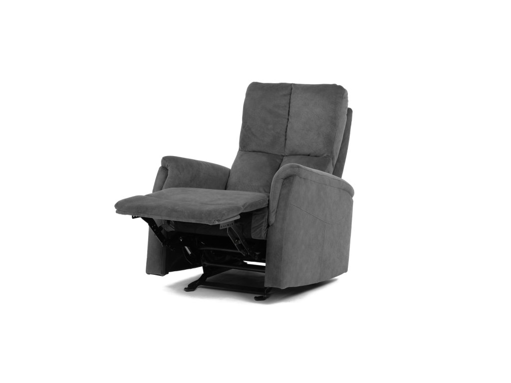 Křeslo polohovací, manuální polohování, šedá látka, houpací mechanismus