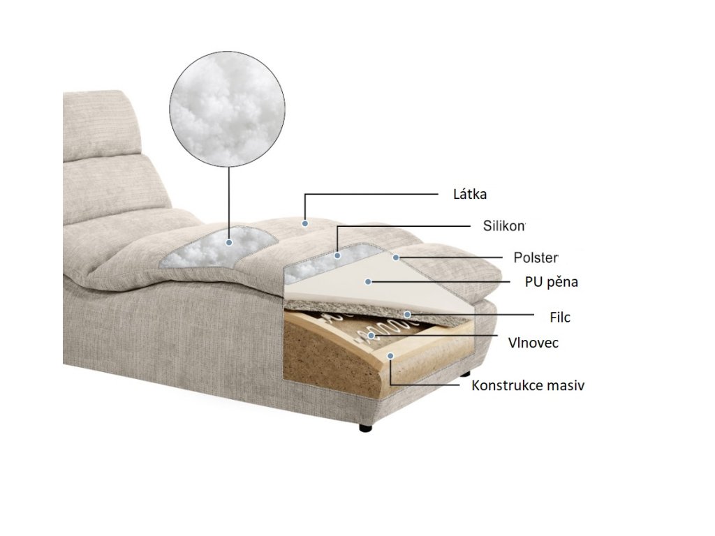 Pohodlná výplň: Kombinace nábytkového fleecu a silikonových kuliček zajišťuje měkkost a tvarovou stálost.