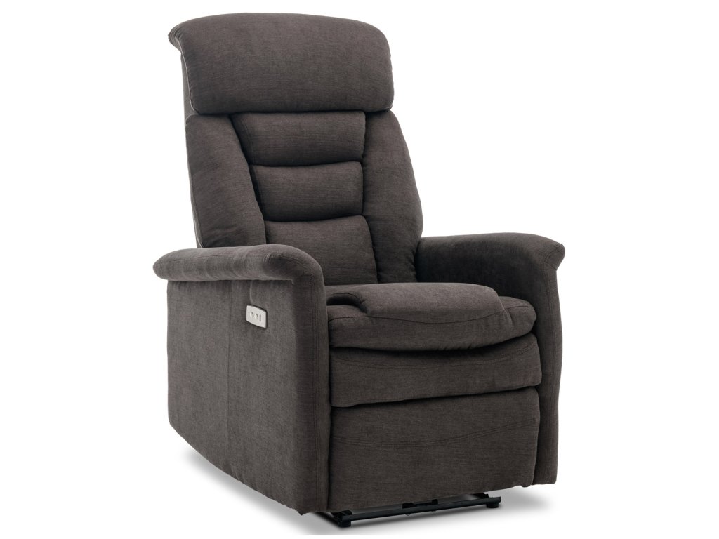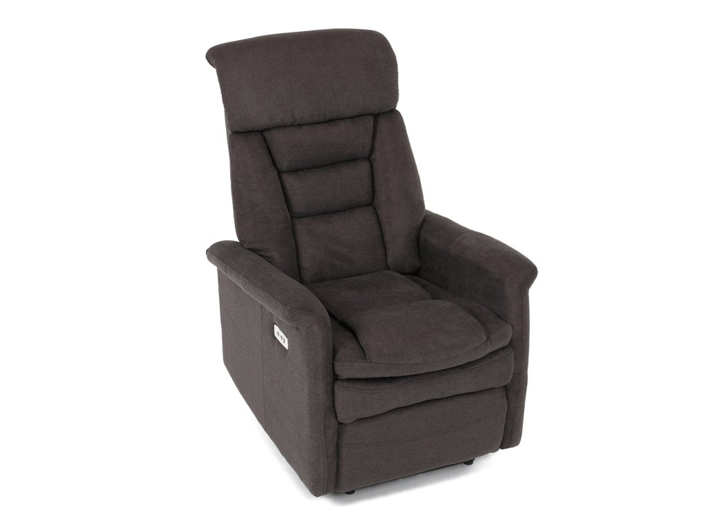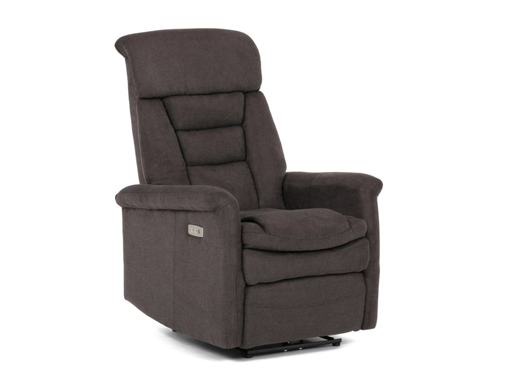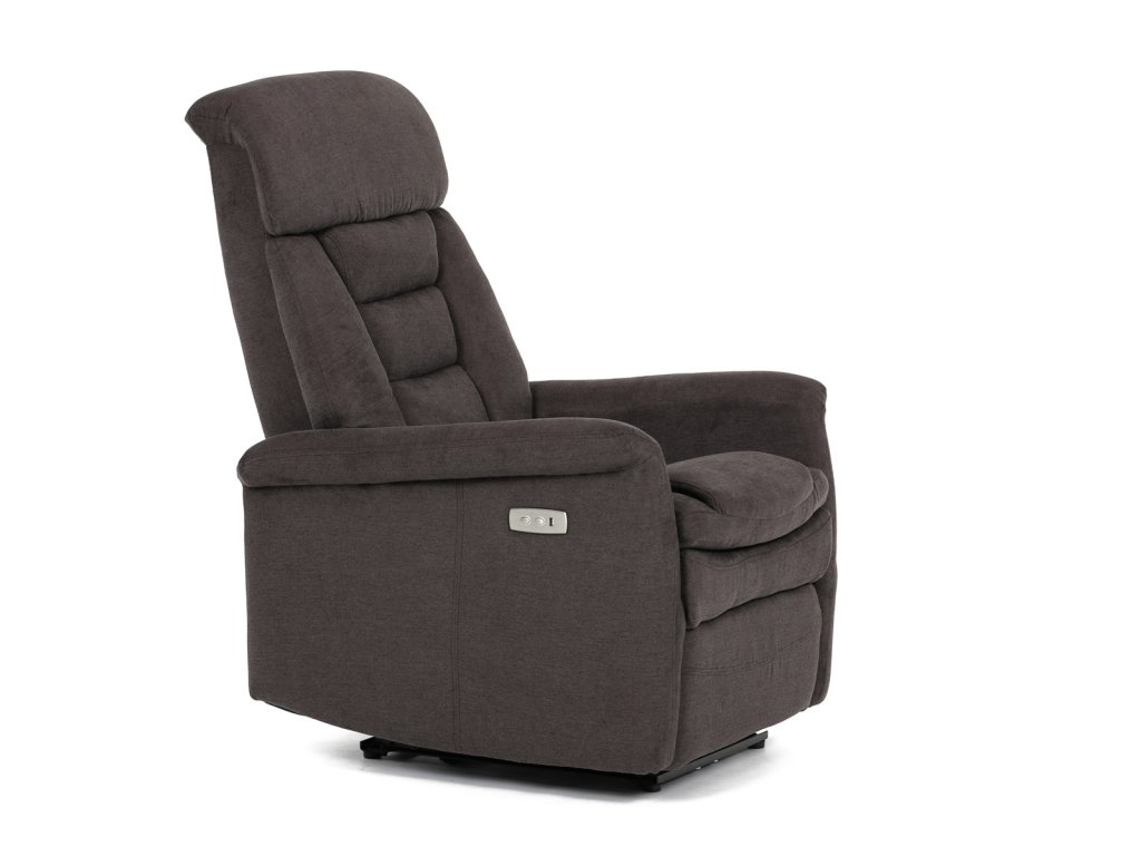 Polohovací křeslo s elektrickým ovládáním, potah hnědá látka