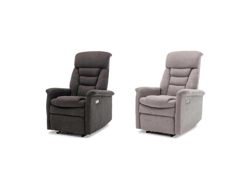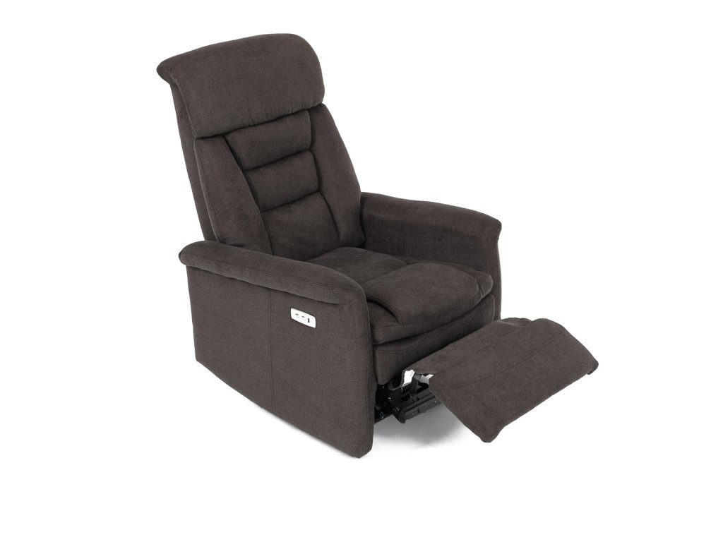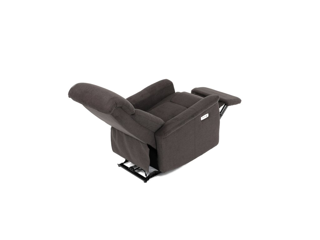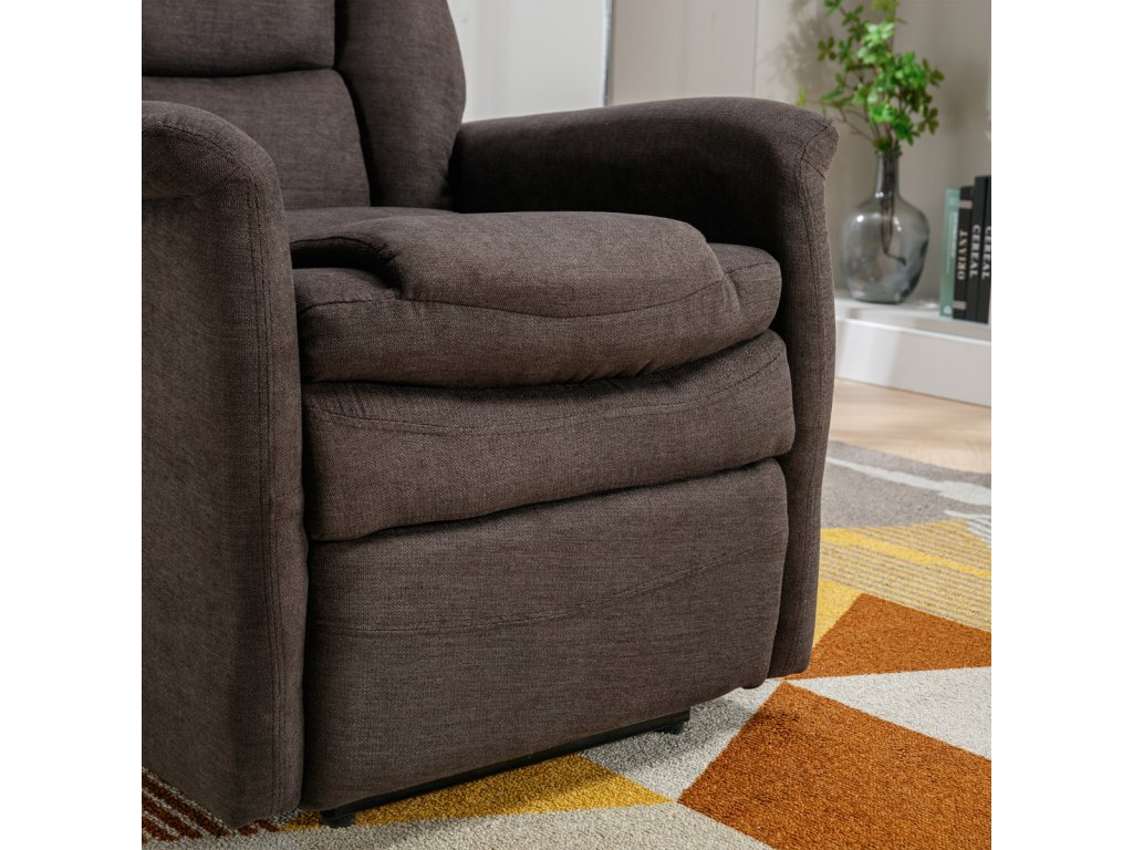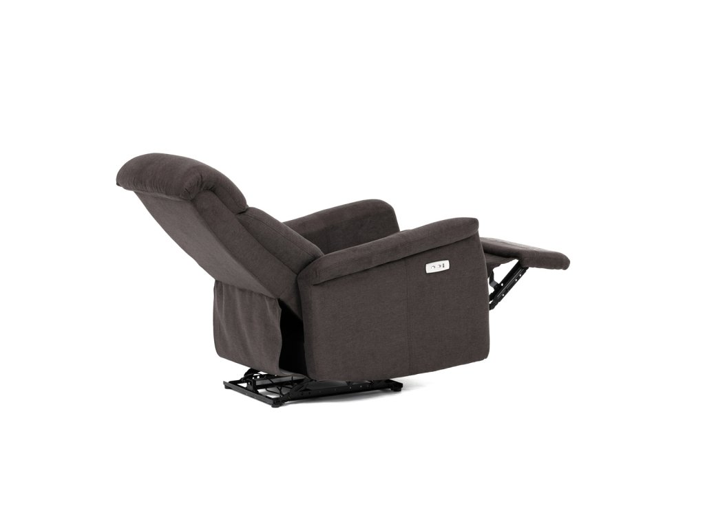 Polohovací křeslo s elektrickým ovládáním, potah hnědá látka