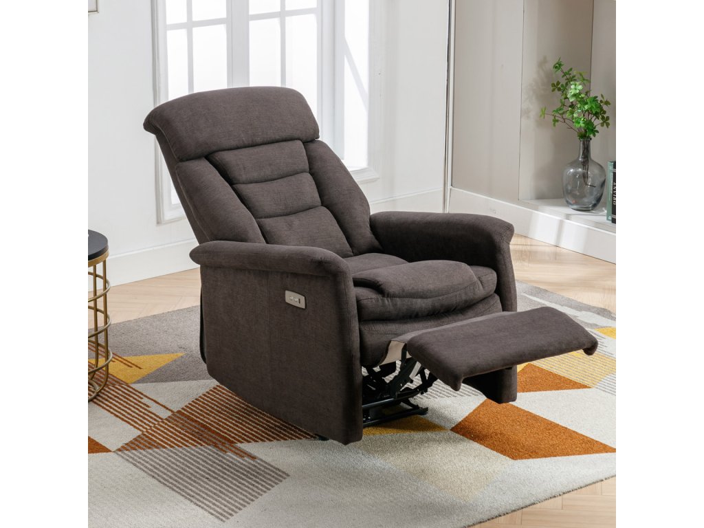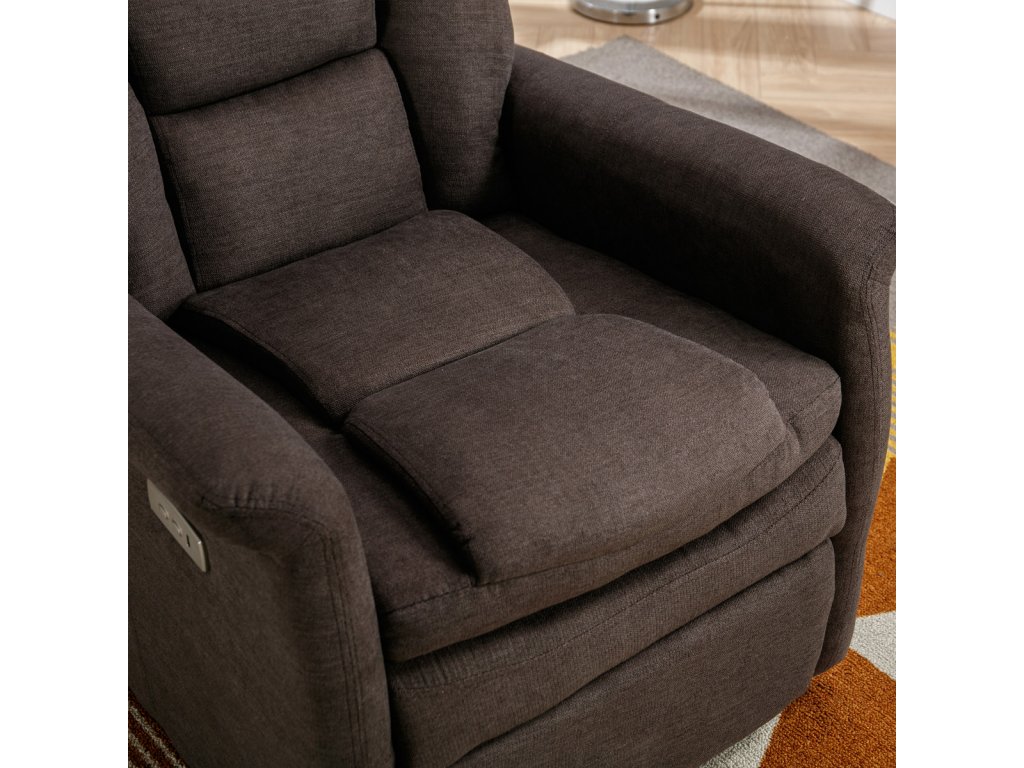 Dopřejte si maximální pohodlí s polohovacím křeslem od značky Autronic, které je ideální volbou pro moderní obývací pokoj. Křeslo v elegantní hnědé barvě z hladké látky nabízí elektrické ovládání polohování a praktický USB konektor pro nabíjení zařízení. Komfort zajišťuje výplň z PU pěny a kvalitní výztuhy sedáku. Stabilní konstrukce s nosností až 130 kg slibuje dlouhou životnost. Perfektní spojení stylu, funkčnosti a relaxace pro každý interiér.Doplňkové parametry