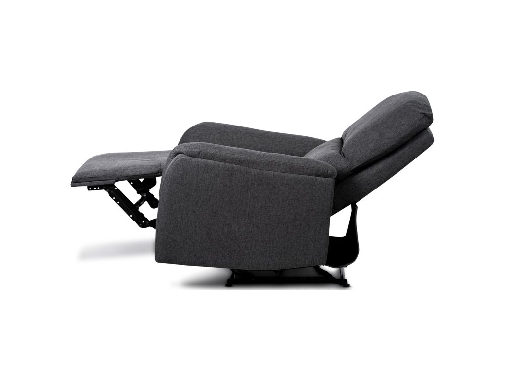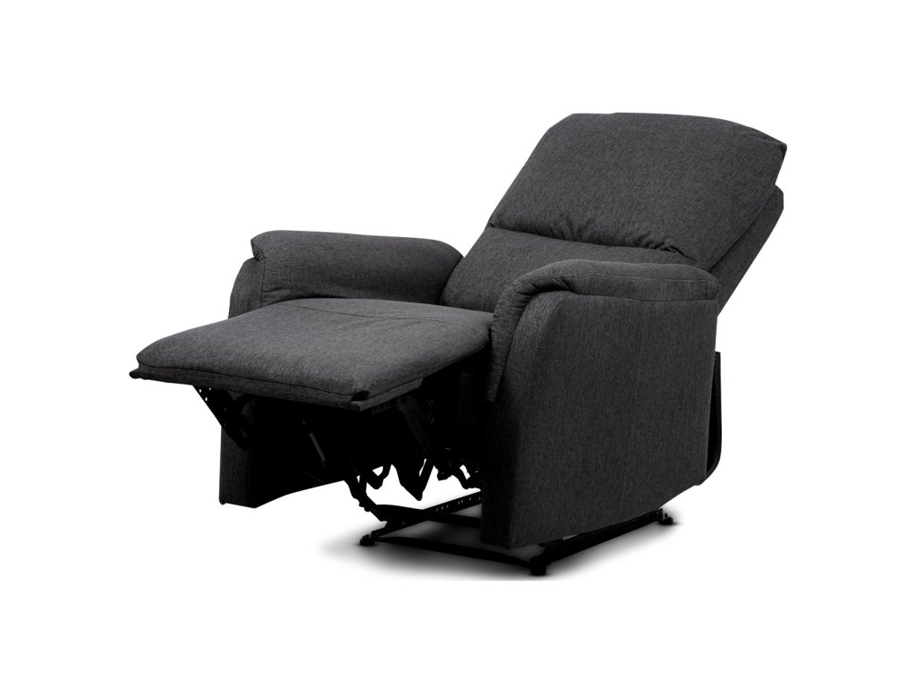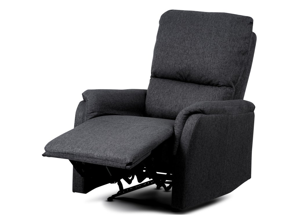 Polohovací TV křeslo, potah tmavě šedá látka, kovová mechanická konstrukce, čern