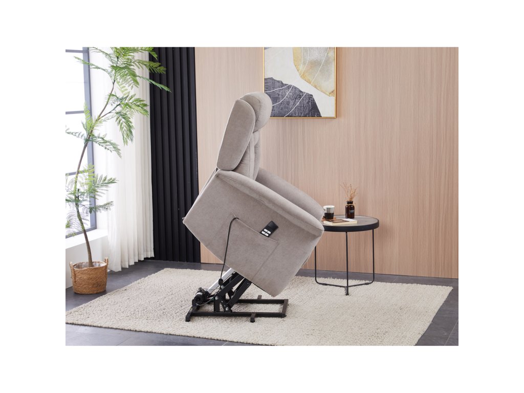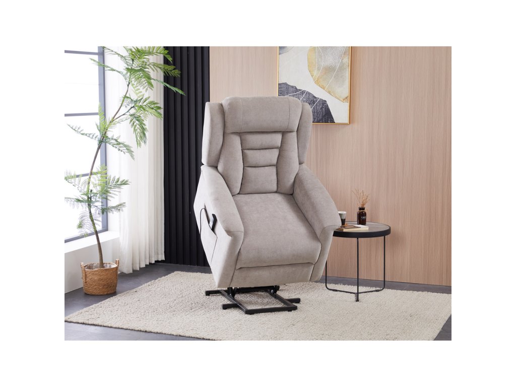 Relaxační křeslo s elektrickým ovládáním, pomoc při vstávání, potah lanýžová látka, 2 motory
