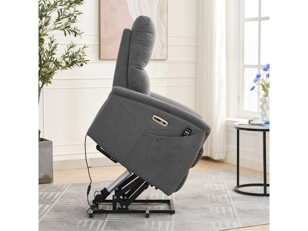Objevte pohodlí a relaxaci s naším elektricky ovládaným relaxačním křeslem v moderní šedé barvě. Toto křeslo je navrženo tak, aby poskytovalo maximální komfort a zlepšilo váš domácí odpočinek. Ideální do obývacího pokoje, kde se stane vaším oblíbeným místem pro relaxaci. Klíčové vlastnosti: • Elektrické ovládání: Křeslo je vybaveno jedním motorem pro snadné a plynulé nastavování polohy opěradla a podnožky. • Výklopná funkce: Usnadňuje vstávání, což je ideální pro osoby s omezenou pohyblivostí. • Integrované ovládání s USB a USB-C: Panel umožňuje snadné nastavení křesla a nabíjení vašich elektronických zařízení přímo z křesla. • 8 bodová vibrační masáž: Strategicky rozmístěné body masáže poskytují maximální úlevu a uvolnění svalů. • Vyhřívání: Vyhřívací funkce je ideální pro chladnější dny a pomáhá zmírnit svalové napětí. • Kabelový ovladač: Snadno dostupný a intuitivní ovladač pro funkce masáže a vyhřívání. • Moderní design: Čalouněné měkkou a odolnou látkou v elegantní šedé barvě, která se hodí do jakéhokoli interiéru. Proč si vybrat naše elektrické relaxační křeslo? Naše elektricky ovládané relaxační křeslo je navrženo s ohledem na vaše pohodlí a zdraví. S funkcemi jako jsou vibrační masáž a vyhřívání, poskytuje úlevu od každodenního stresu a napětí. Integrované ovládání s USB porty je moderním doplňkem, který vám umožní zůstat připojení a nabíjet svá zařízení, aniž byste museli vstávat. Výklopná funkce je skvělá pro seniory nebo osoby s omezenou pohyblivostí, usnadňuje vstávání a zajišťuje bezpečnost. Zakupte si naše šedé elektrické relaxační křeslo ještě dnes a začněte si užívat luxusní pohodlí ve svém domově.Doplňkové parametry