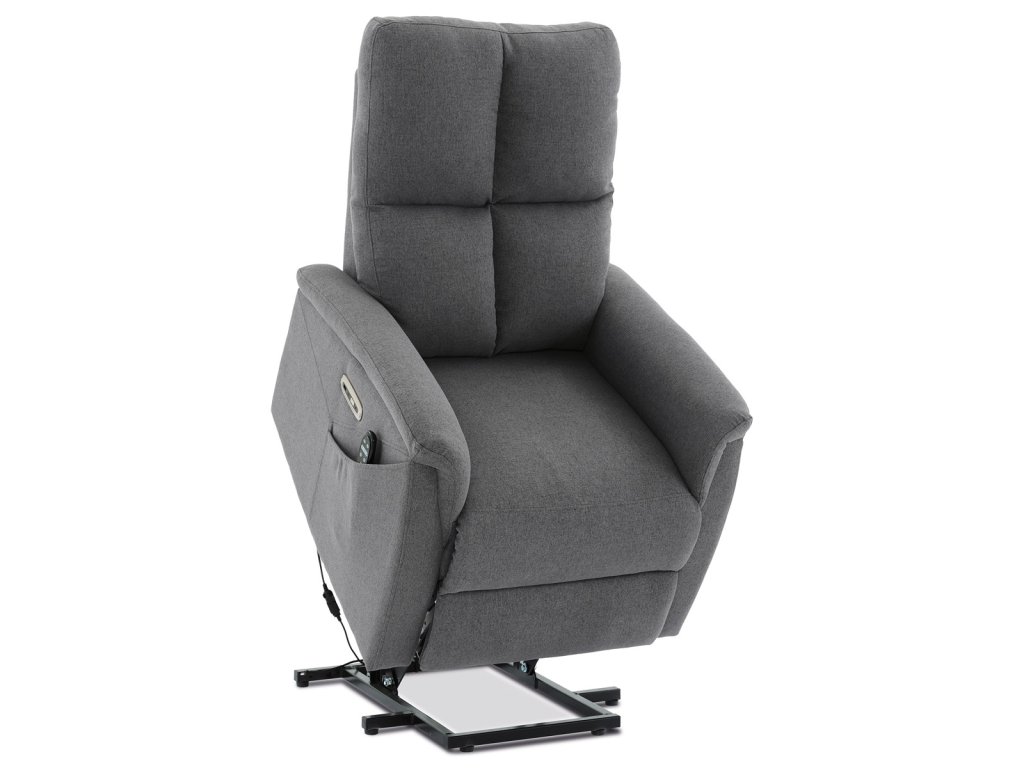 TV-929 Křeslo polohovací masážní s výhřevem, 8bodová vibrační masáž, zvedací systém, USB, šedá látka