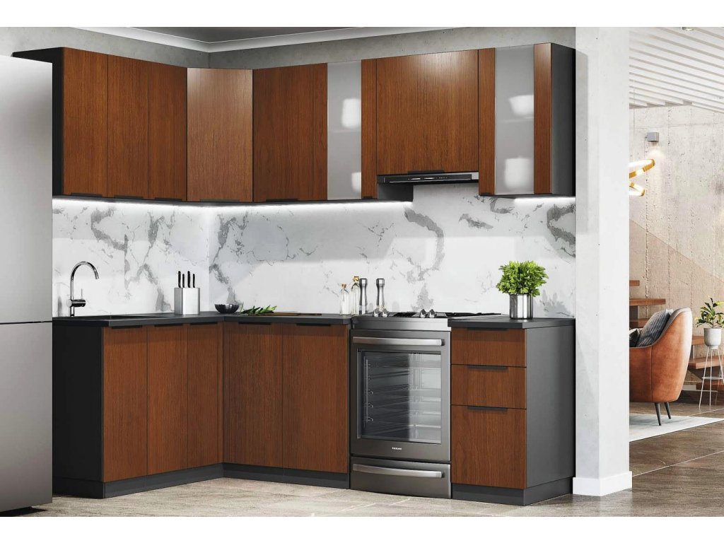 Kuchyně CASA 19016 rohová ořech/antracit
