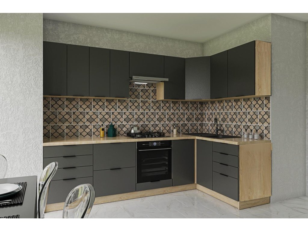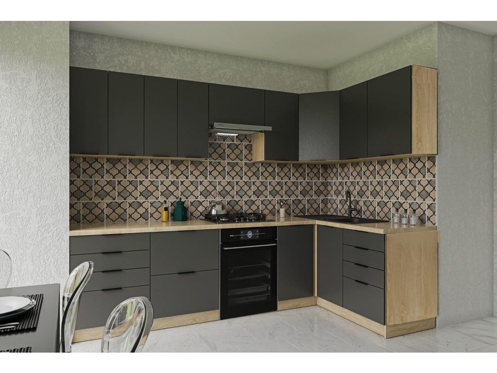 Rohová kuchyňská linka 280x140 KROFT R2N grafit/dub sonoma