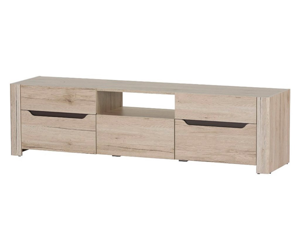 Televizní stolek dvoudveřový se zásuvkou ze sektorové řady DESJO. Tento moderní nábytek je součástí sestavy určené do jídelny nebo obývacího pokoje. Celá řada se vyznačuje úspěšnou kombinací současné a moderní přírodní formy. Jednoduchý styl umocňuje senzační bezúchytový systém nábytku. Vyrábí se z vysoce kvalitní dýhované dřevotřískové desky s fólií. Dekor s 3D efektem vizuálně dává dojem hlubokého povrchu. Široký výběr vám zaručí si sestavit nábytek podle svých představ. Barevné provedení je dub sanremo s dekorativním proužkem hnědé barvy. Nábytek se dodává v demontovaném stavu.Doplňkové parametry