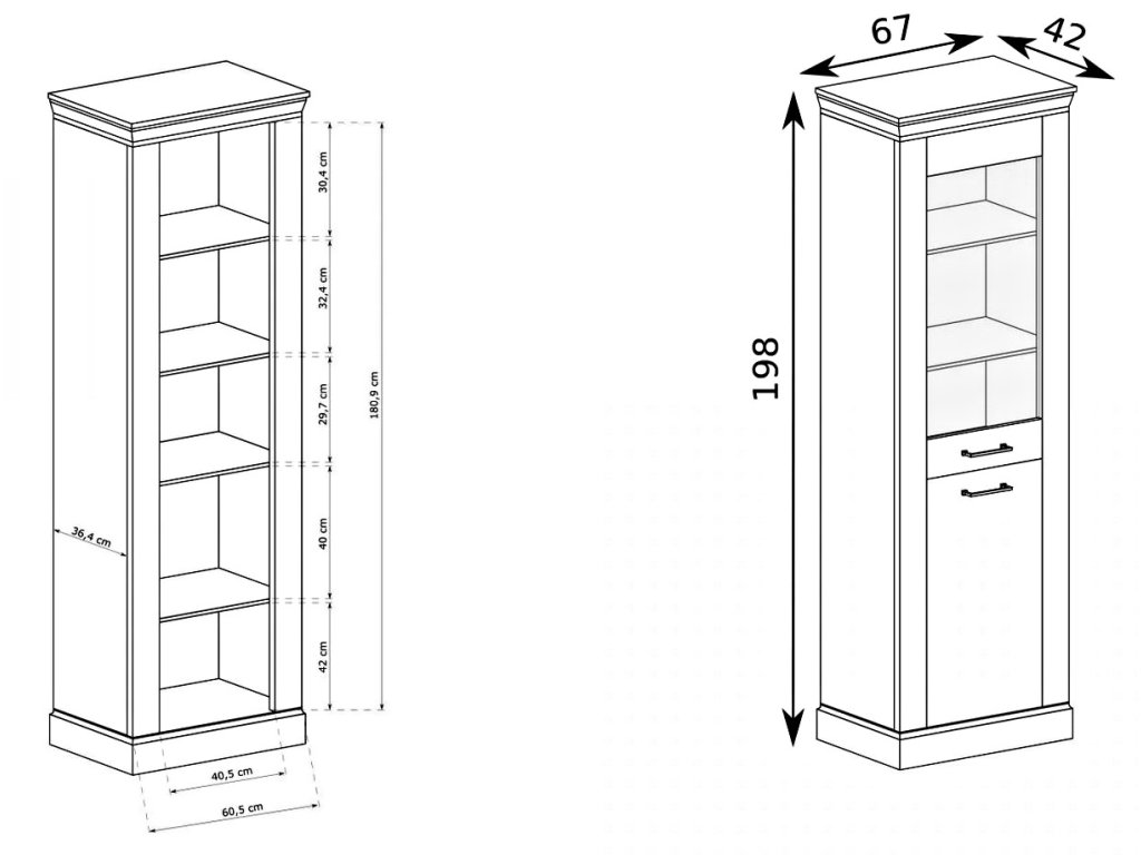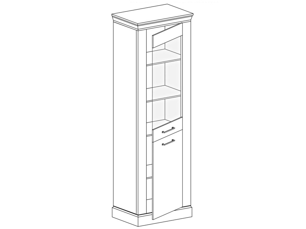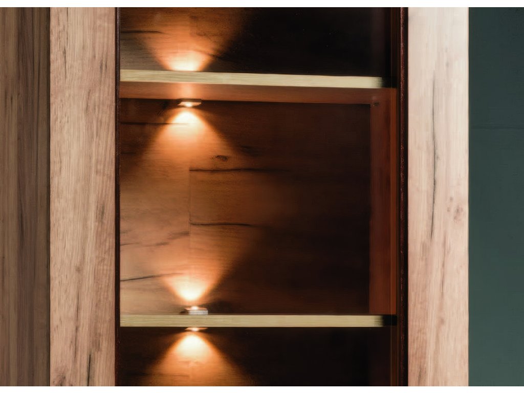 Vitrína ze sektorové řady má 2 dvířka, z toho jedny jsou prosklené. Kolekce nábytku v sobě spojuje jednoduchost, krásný vzhled a funkčnost. Jedná se o stylovou kolekci nábytku rustikálního stylu, který je vhodný jak do ložnice tak do obývacího pokoje. Jeho barevné provedení vnese do domova lehkost a eleganci. Barevné provedení - dub zlatý kraft. Nábytek je vyroben z kvalitního lamina ohraničeného ABS páskou. Možnost dokoupení LED osvětlení do vitríny. Kolekce se skládá z mnoha prvků a tento široký výběr vám zaručí sestavit si nábytek podle svých vlastních představ a přání. Dodáváme v demontovaném stavu.Doplňkové parametry