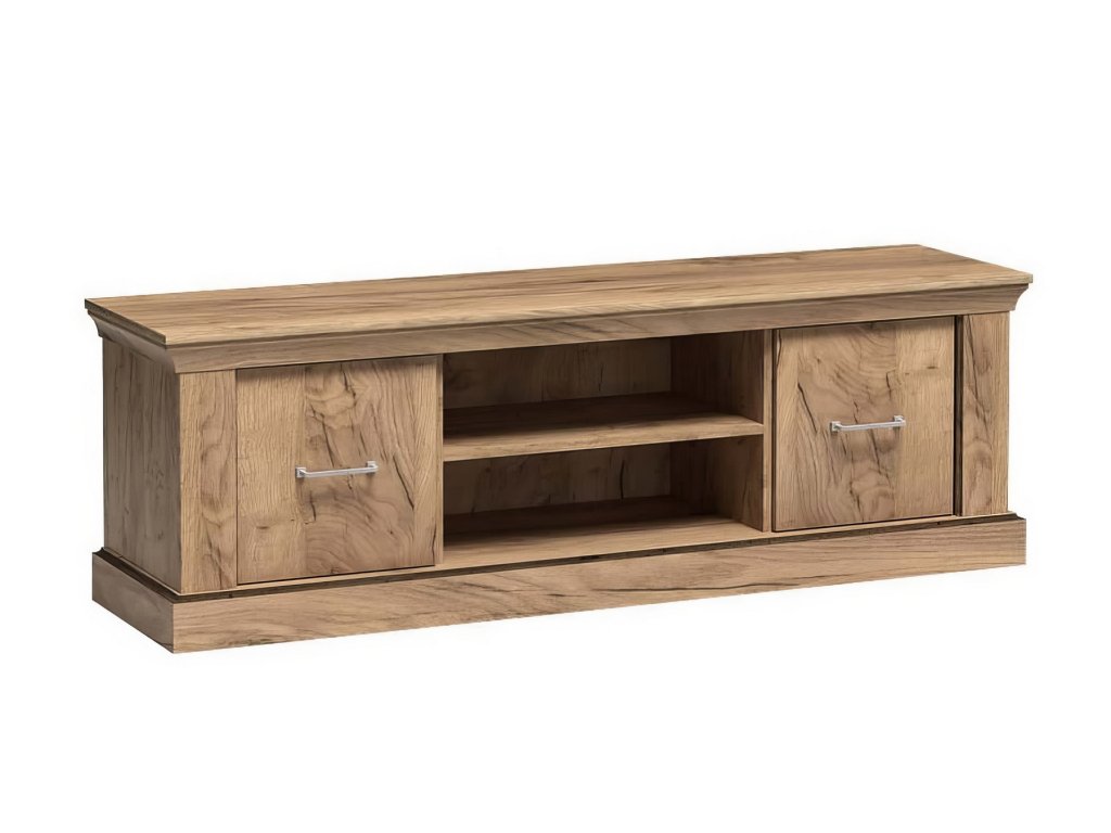 Televizní stolek ze sektorové řady. Kolekce nábytku v sobě spojuje jednoduchost, krásný vzhled a funkčnost. Jedná se o stylovou kolekci nábytku rustikálního stylu, který je vhodný jak do ložnice tak do obývacího pokoje. Jeho barevné provedení vnese do domova lehkost a eleganci. Barevné provedení - dub zlatý kraft. Nábytek je vyroben z kvalitního lamina ohraničeného ABS páskou. Kolekce se skládá z mnoha prvků a tento široký výběr vám zaručí sestavit si nábytek podle svých vlastních představ a přání. Dodáváme v demontovaném stavu.Doplňkové parametry
